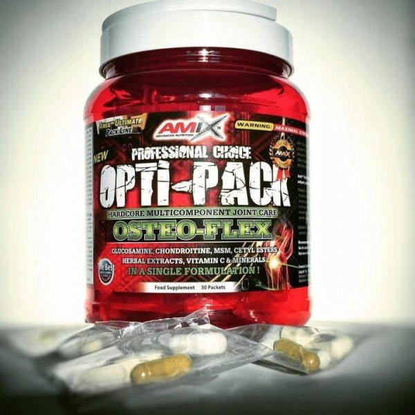 Amix Opti-Pack Osteo-Flex - комплексна дієтична добавка, призначена для людей, які шукають ефективного поліпшення стану суглобів і кісток. Унікальна суміш із 20 активних інгредієнтів із доведеною протизапальною, болезаспокійливою та природною регенерацією суглобів гарантує багатовимірну турботу про здоров’я ваших суглобів. Завдяки цій вдосконаленій формулі ризик травми мінімізований, суглобові структури зміцнюються, а відповідні тканини стимулюються для ефективної регенерації.