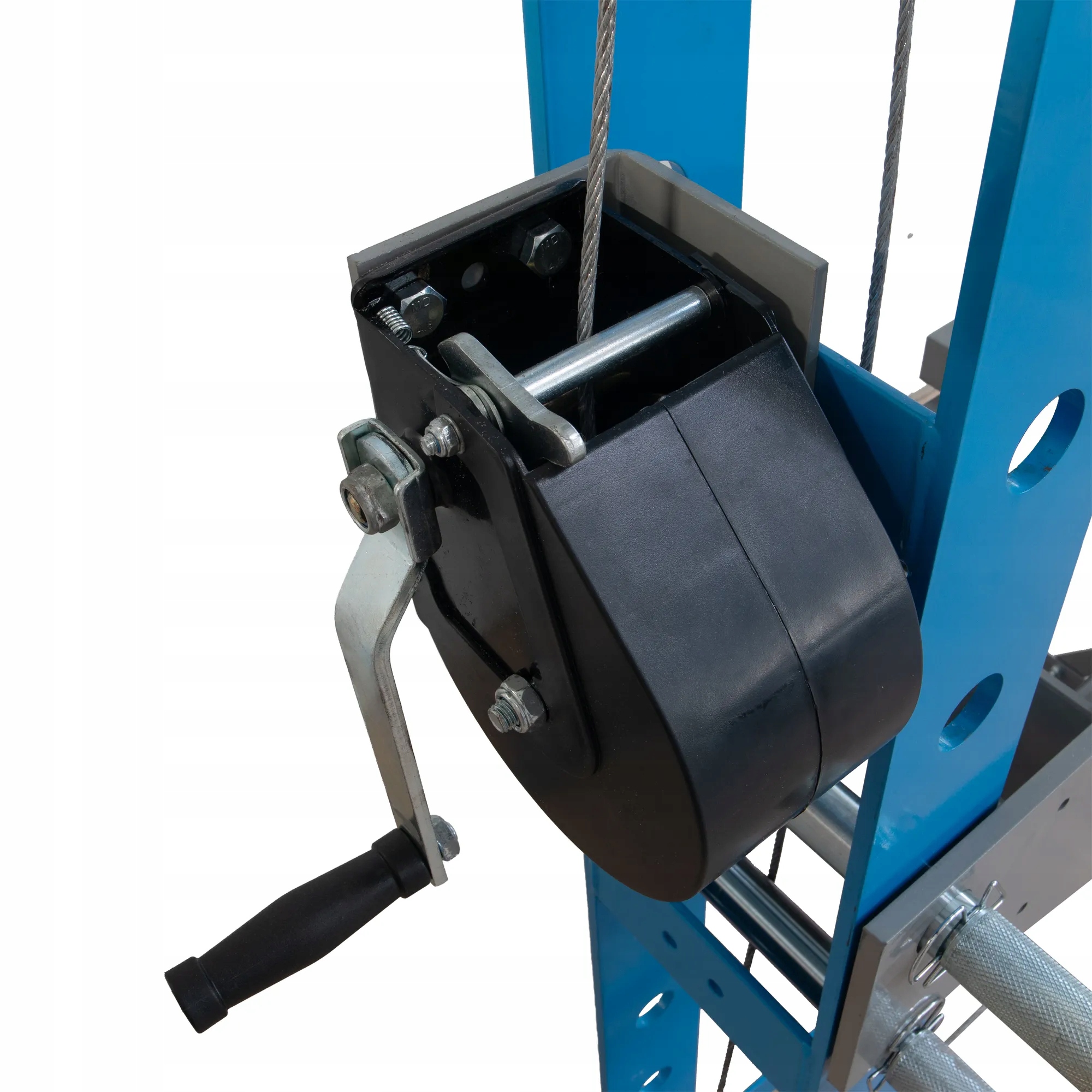 Основні функції Опис функції Тиск 50 т Хід поршня 220 мм Бічний зсув 245 мм Робочий діапазон 88 – 1068 мм Ширина столу 730 мм Електрогідравлічний режим роботи Тип насоса Електродвигун з гідронасосом Розсувний привод (ліворуч-праворуч) Регулювання столу за допомогою ручної лебідки Багатофункціональні утримуючі пластини (призми) в комплекті Настільний замок Шпильки з дисковими шайбами Попереджувальна панель безпеки на приводі Рамна конструкція Роботозварена сталь