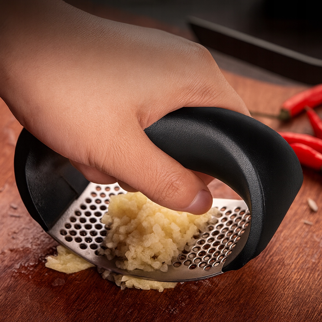 ➡️ Часникодавка - практичний інструмент, який підійде на будь-якій кухні. Виготовлений з нержавіючої сталі, він ефективно подрібнює та подрібнює часник, а зручна пластикова ручка забезпечує комфорт використання.