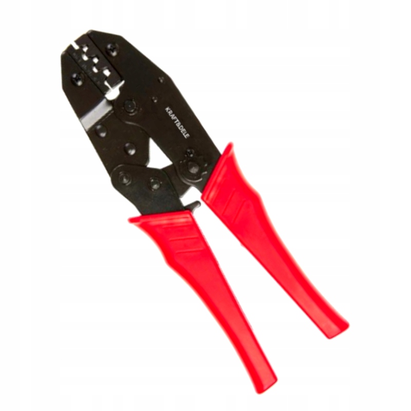 Універсальний обжимник для кабельних наконечників Kraft&Dele, символ KD10536. Інструмент виготовлений зі спеціальної сталі підвищеної міцності, а рукоятка оброблена нековзким матеріалом.