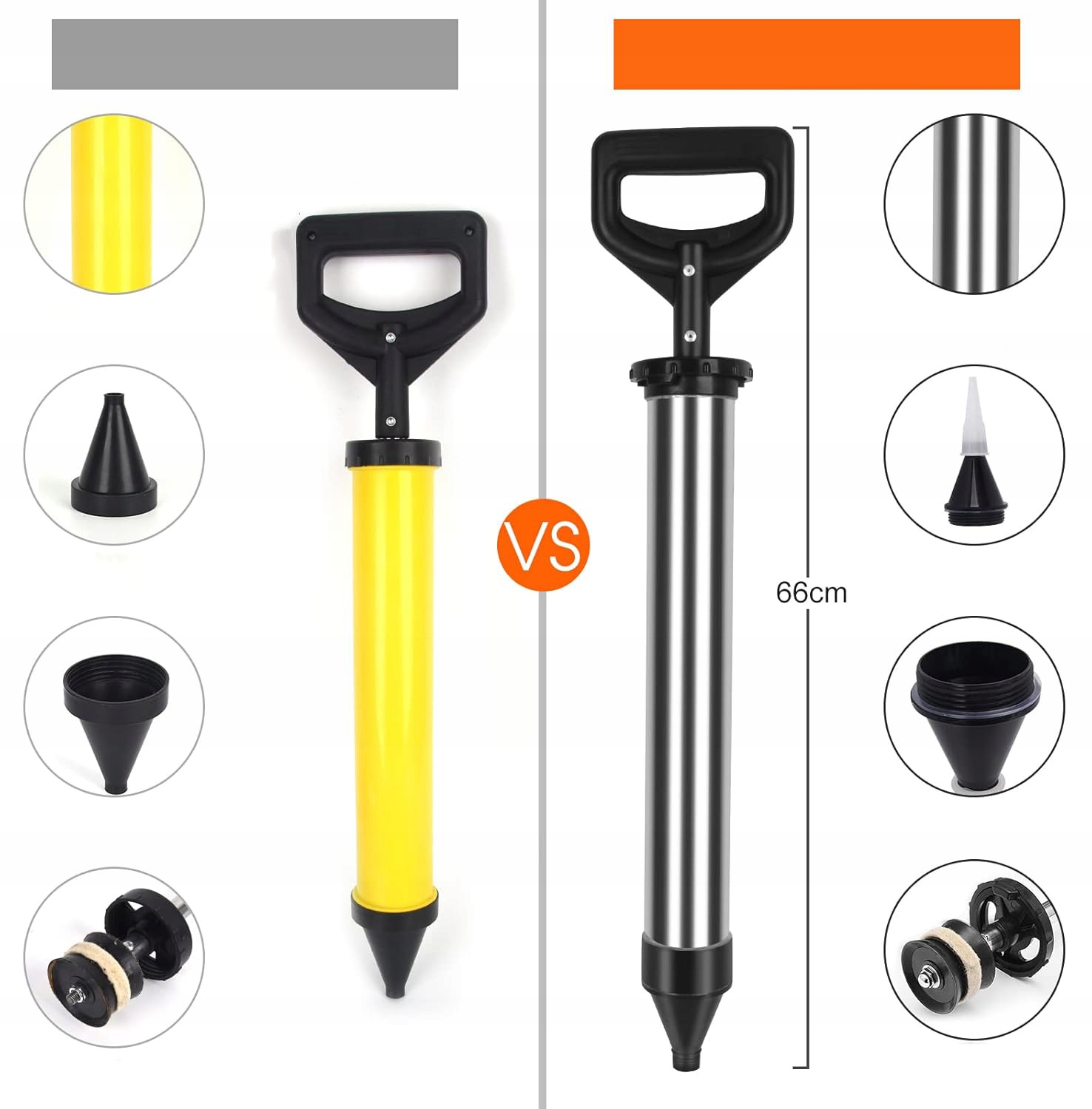 Практичні аксесуари підвищують комфорт і безпеку під час роботи. Ідеально підходить для затирання швів, герметизації дверних коробок і ремонту стінних тріщин. Особливо підходить для роботи з розчином, епоксидною смолою та іншими герметизуючими матеріалами. Мінометну гармату можна легко розібрати та очистити після використання, забезпечуючи тривалу роботу. Цей розпилювач бетону особливо ефективний для великих проектів, забезпечуючи рівномірний розподіл розчину.