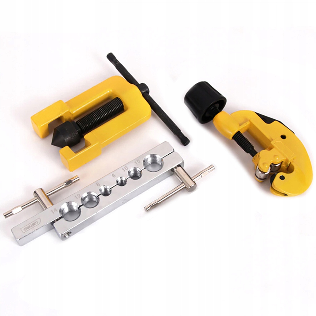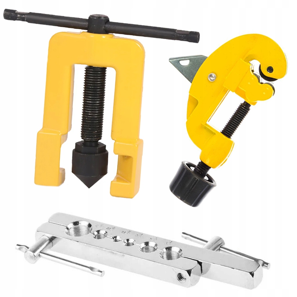 набір для опресовування гальмівних магістралей, призначений для розтягування труб вручну та виготовлення конічних фланців під кутом 90°. Він ідеально підходить для встановлення систем опалення, кондиціонування та гальм.