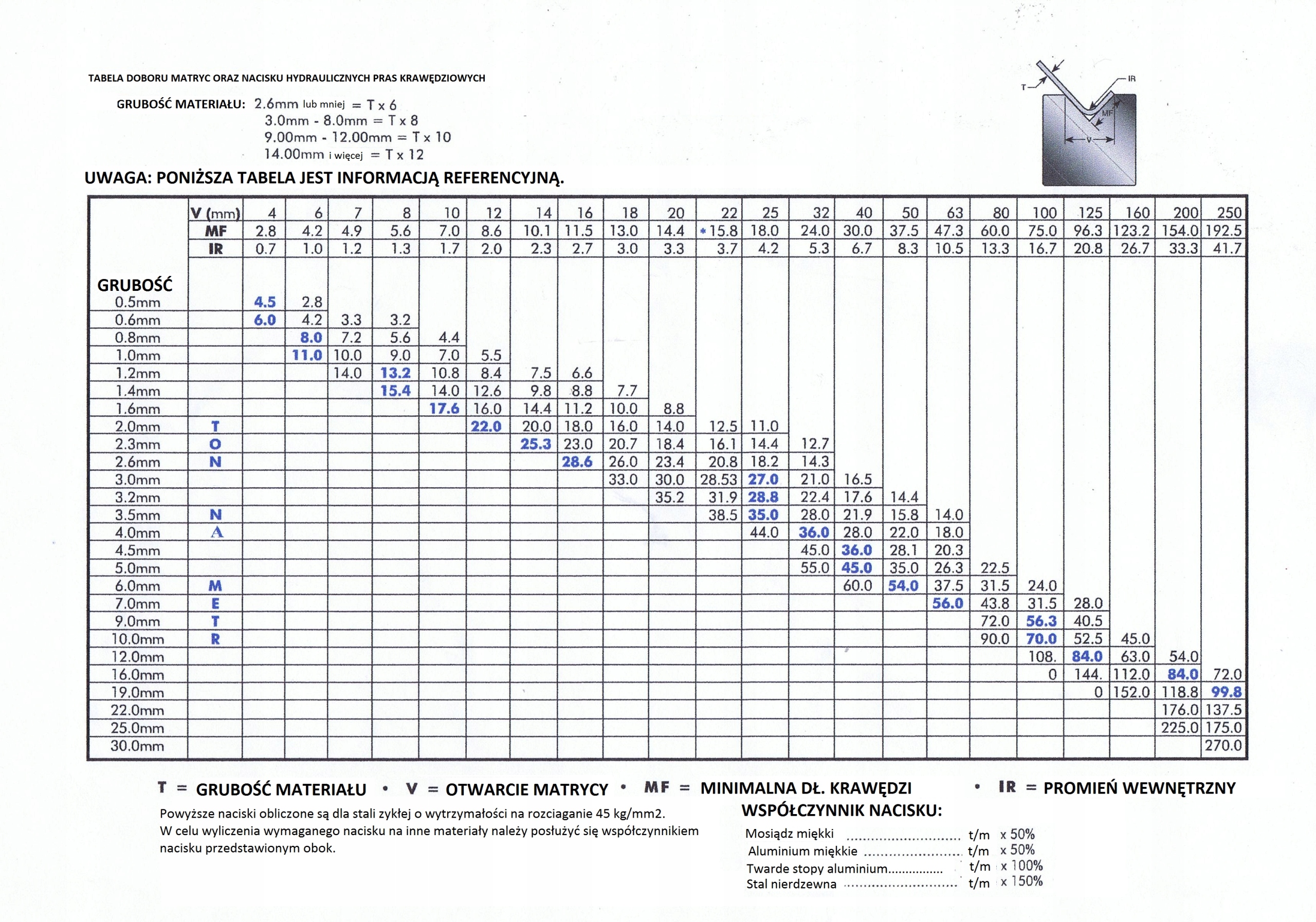 - Набір пуансонів і 4-стороння матриця (відповідно до вимог замовника)
