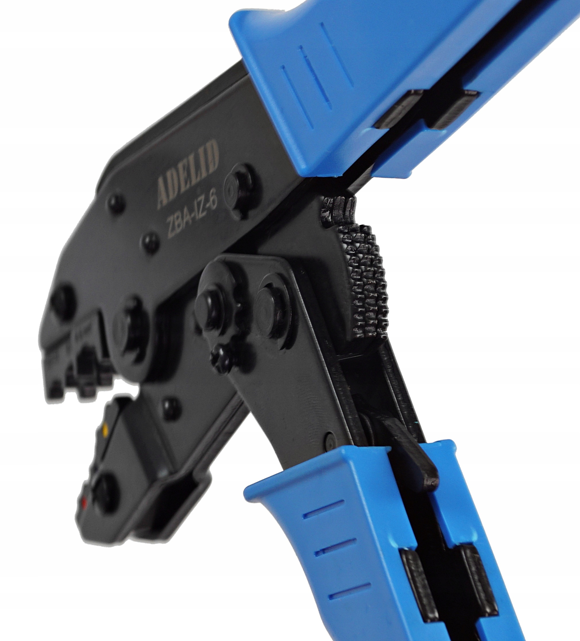 Інструмент для обтиску ізольованих з’єднувачів із почорнілою поверхнею, яка захищає проти корозії. Пластикова ручка преса. Храповий механізм дозволяє точно затискати без застосування надмірної сили.