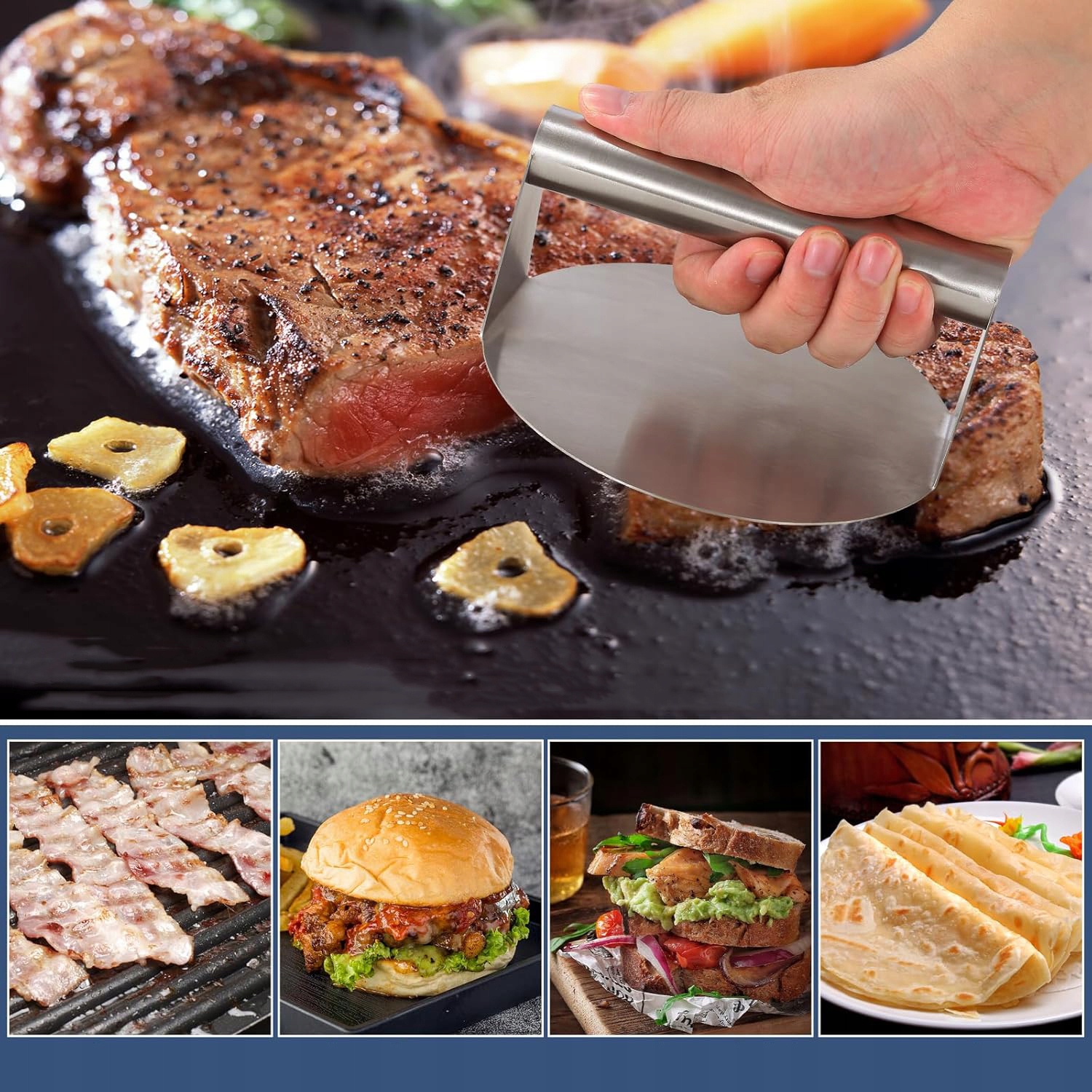 🍔 Ефективне та здорове приготування їжі: незалежно від того, чи ви гриль бекон, готуєте м'ясні пиріжки, запікайте стейки чи готуєте ковбаси та овочі, наш буржуазний стискання цього процесу. Рівномірно чинити тиск на плоску сковороду або на зовнішній грилі призводить до швидшого приготування їжі та навіть випічки. Крім того, це допомагає вичавити зайвий жир, щоб отримати здоровіші, смачні страви.