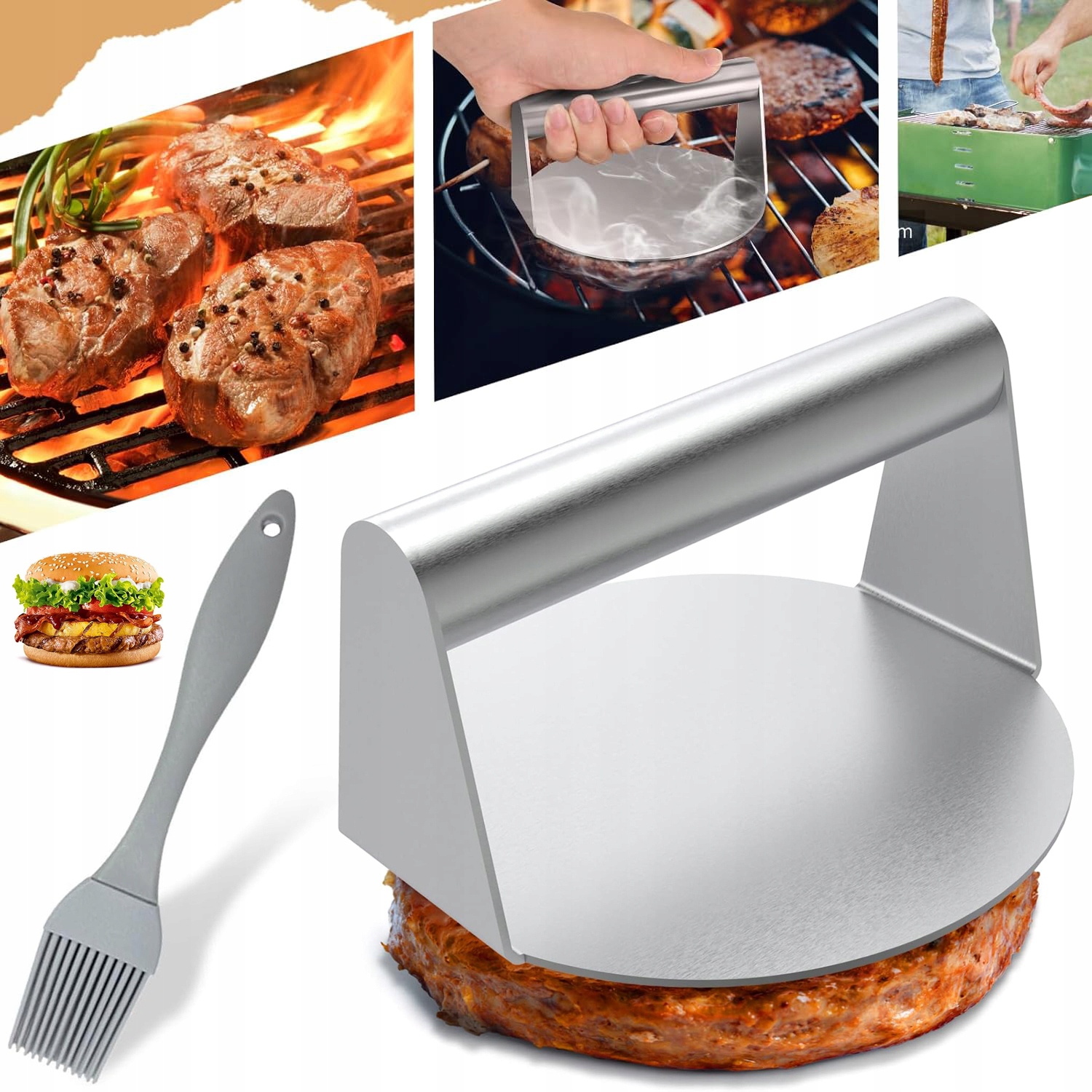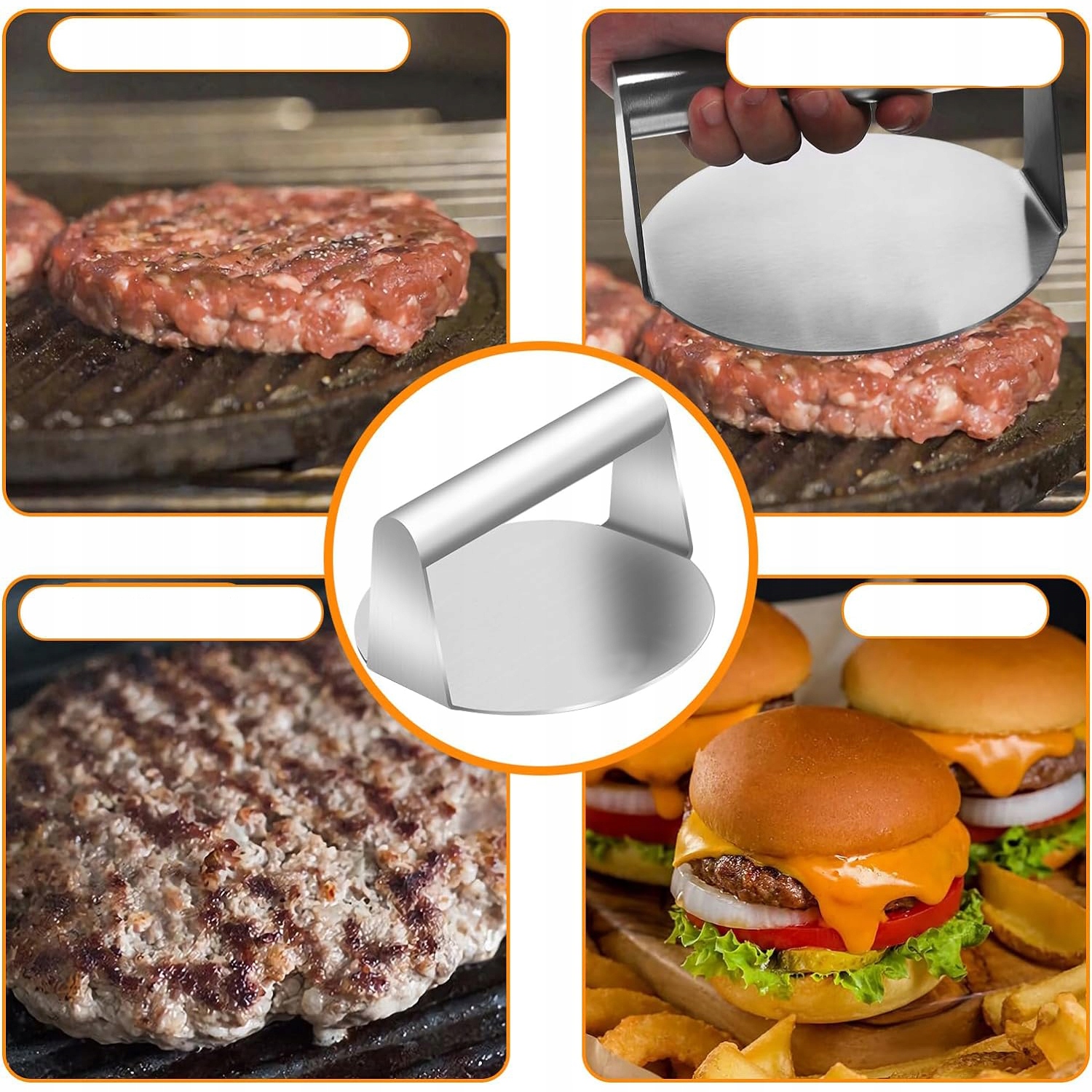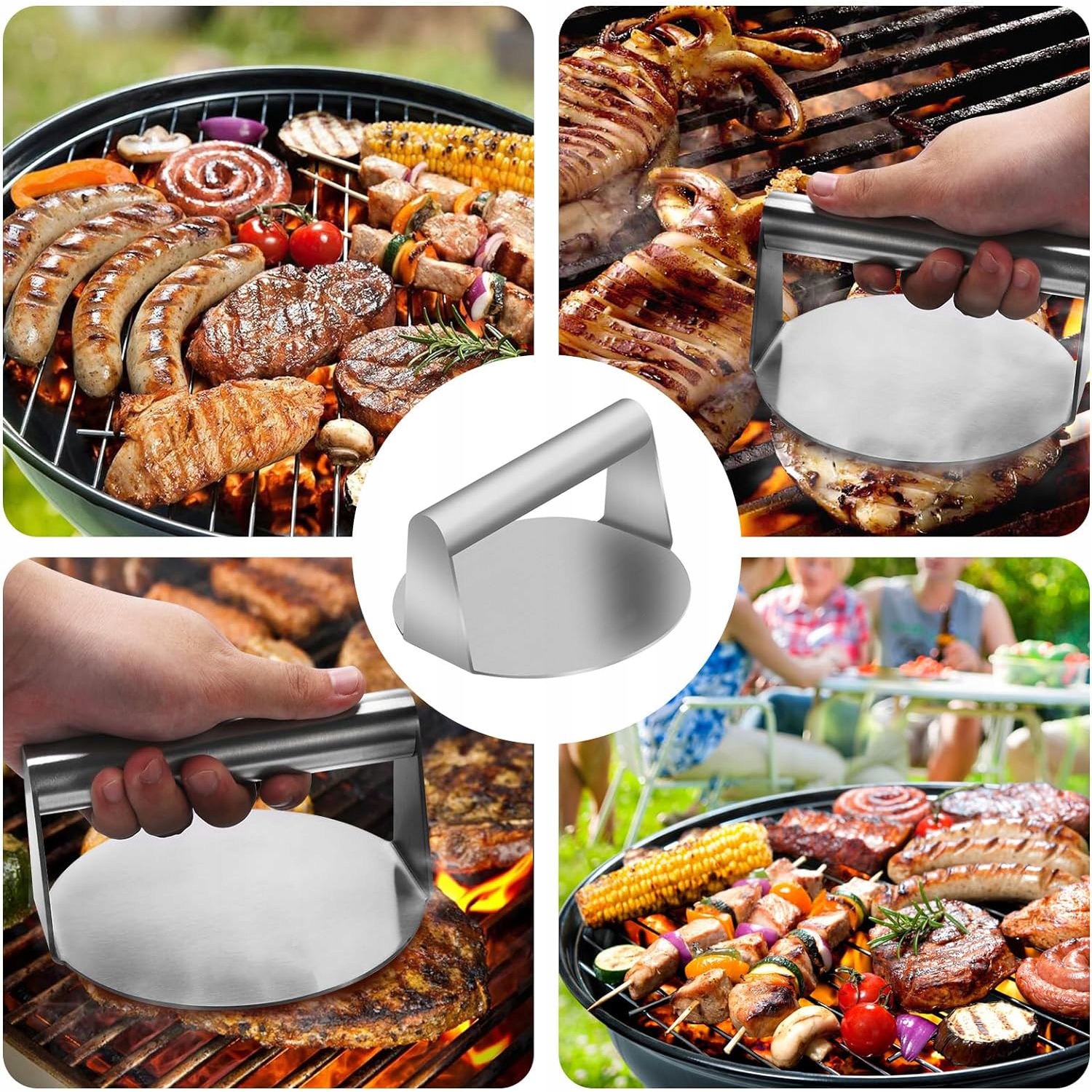 🍔 Прес 304 гамбургерів з нержавіючої сталі харчових продуктів: виготовлений з високої якості 304 нержавіючої сталі, цей гамбургери преси не тільки характеризуються високою температурою та корозійною стійкістю, але також сертифіковано для контакту з їжею, забезпечуючи безпечний та прямий контакт з вашими кулінарними творіннями. Ця міцна Burger Press була створена для довговічності, що гарантує довгострокову продуктивність під час кулінарних пригод.