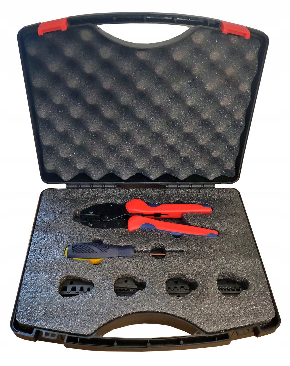 У набір входить кримпер з автоматичним регульованим храповим механізмом і змінні плашки, адаптовані до різних типів електротехнічних роз'ємів. Плашки замінюються відкручуванням двох гвинтів.