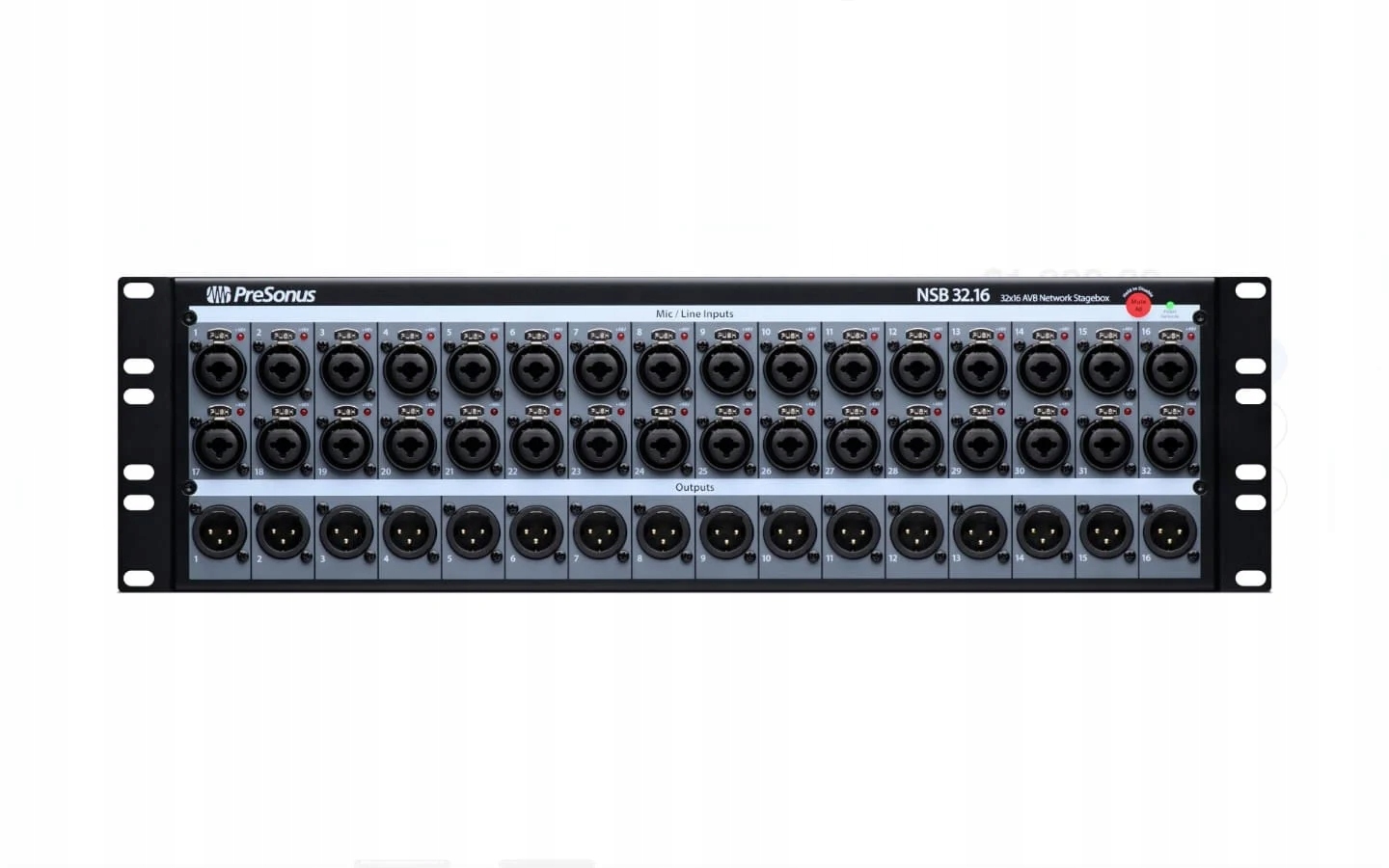 Stagebox PreSonus NSB 32.16 був розроблений для бездоганної роботи з мікшерами PreSonus StudioLive Series III. Новий stagebox — це швидке та просте рішення для передачі сигналу від сцени до мікшера через мережу AVB. У мережі AVB усі сигнали проходять по одному легкому кабелю Ethernet CAT5e або CAT6, усуваючи потребу у важких і дорогих багатожильних мідних кабелях і усуваючи погіршення сигналу, пов’язане з використанням довгих аналогових кабелів. Вбудований 2-портовий комутатор AVB забезпечує легке послідовне з’єднання кількох пристроїв.