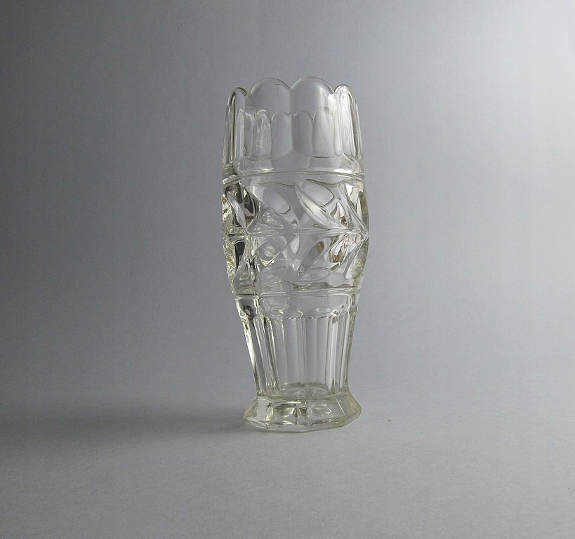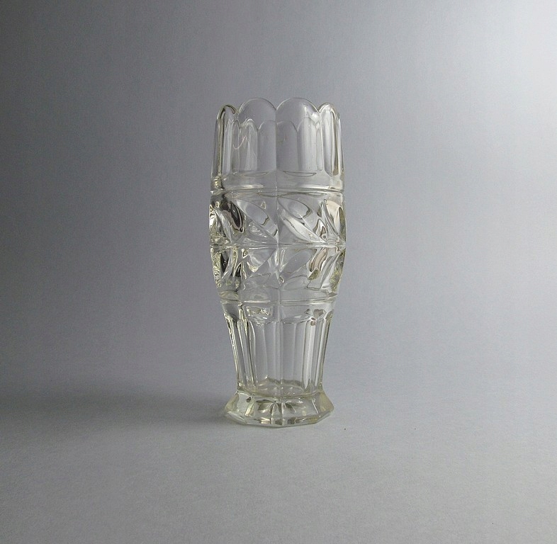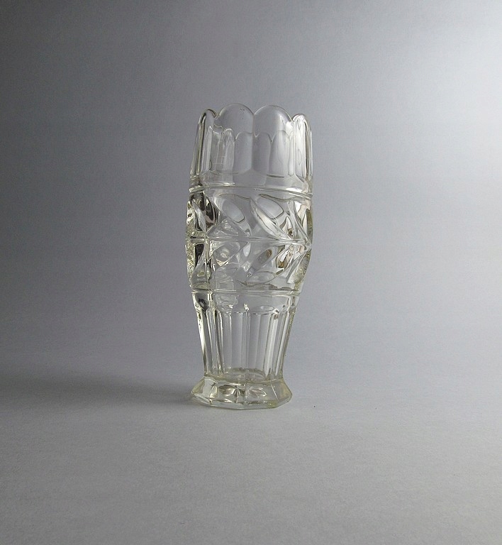 Вітаю пані та панове....... предметом продажу є гарна ваза з пресованого скла... фабрика Walther / модель Merdeces / початок 20 століття..... 100%, надійний оригінал від епоха і велика рідкість для любителів пресованого скла, скло з характерним "пісочним" відтінком, притерте дно... ваза висотою 21 см і діаметром 9 см, важка і масивна, у відмінному стані, тільки видимі подряпини на дні... ...... гарне старе скло!!........ДУЖЕ РЕКОМЕНДУЮ!!!!