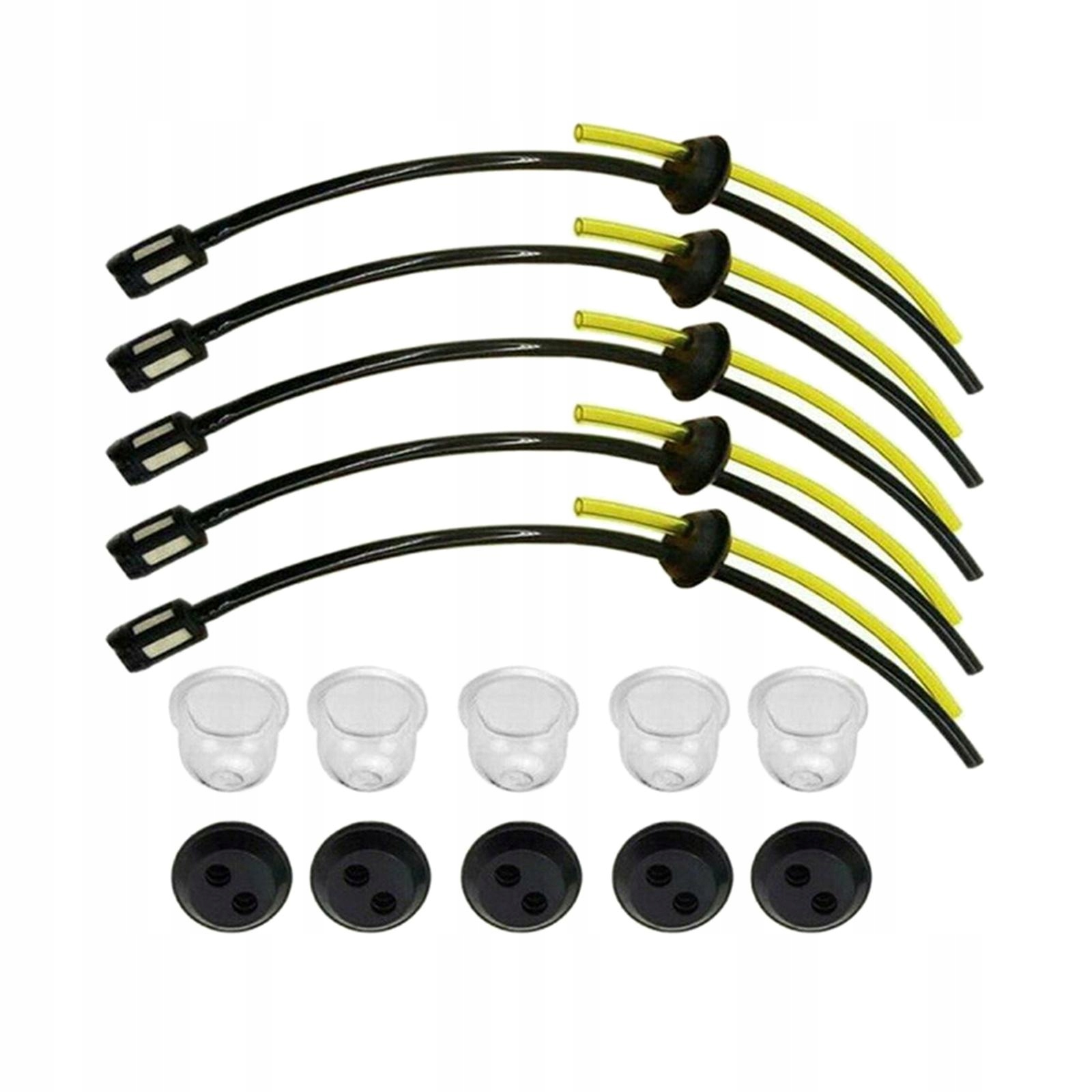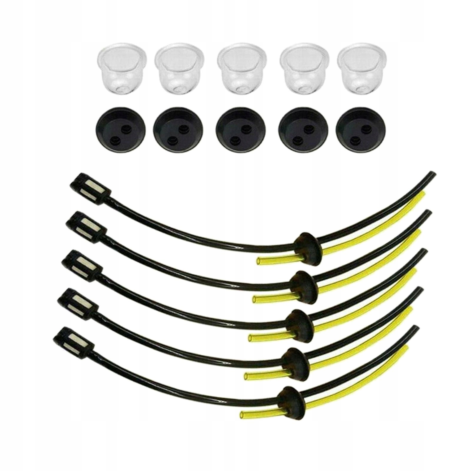 [Замінна паливопровідна труба] Бензиновий фільтр постачається з 5 комплектами універсальних комплектів бензинових фільтрів (фільтр і паливопровід), 5 гумових заглушок, 5 інжекторних упорів фільтра. Підходить для більшості двигунів із тримерами, газонокосарками тощо.