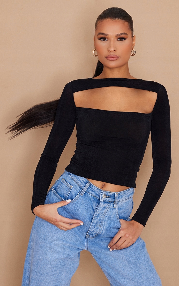 PRETTYLITTLETHING КОРОТКИЙ ЧОРНИЙ ТОП R38 D116082