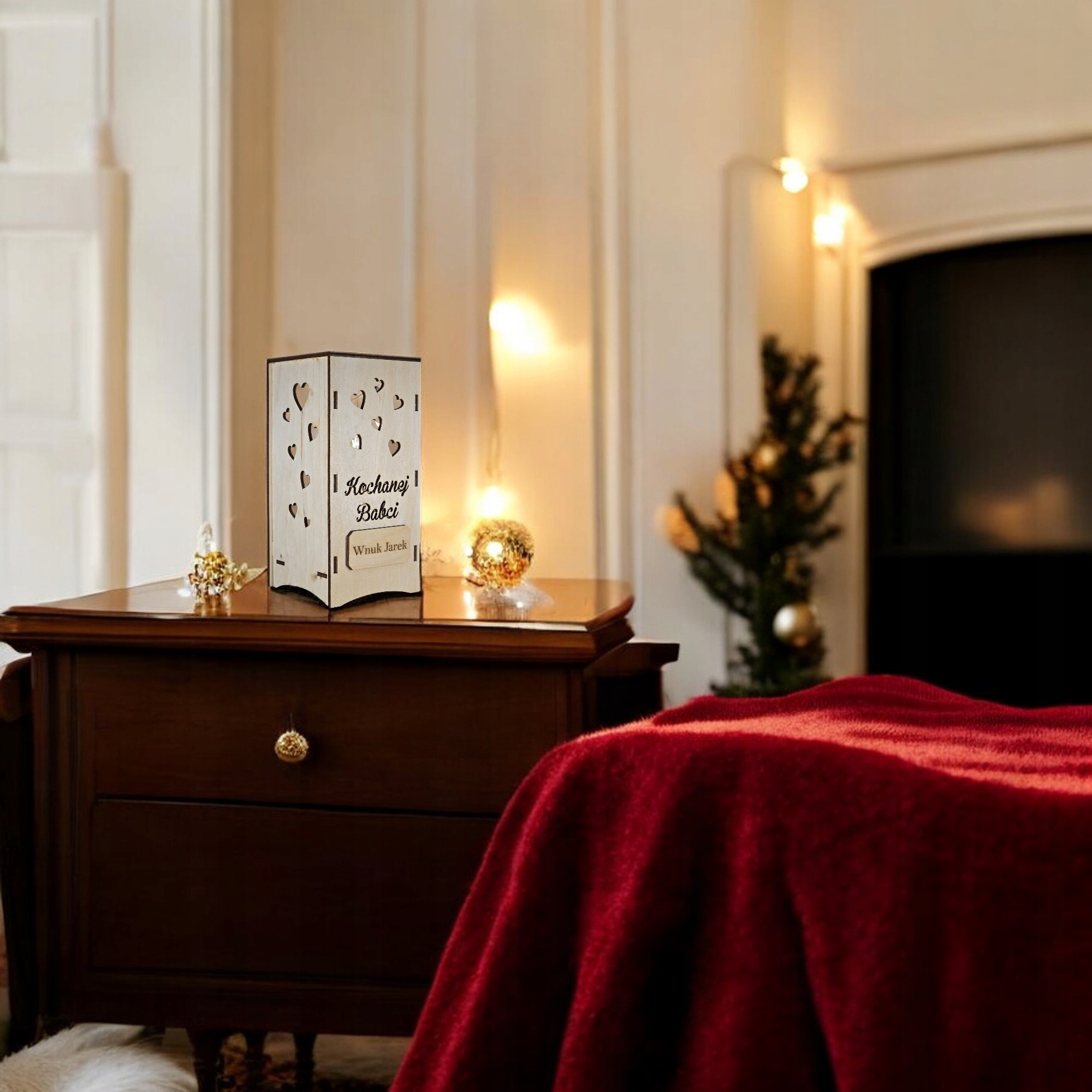 Prezent Dla Babci i Dziadka dla Dziadków Drewniana Lampka LED + GRAWER