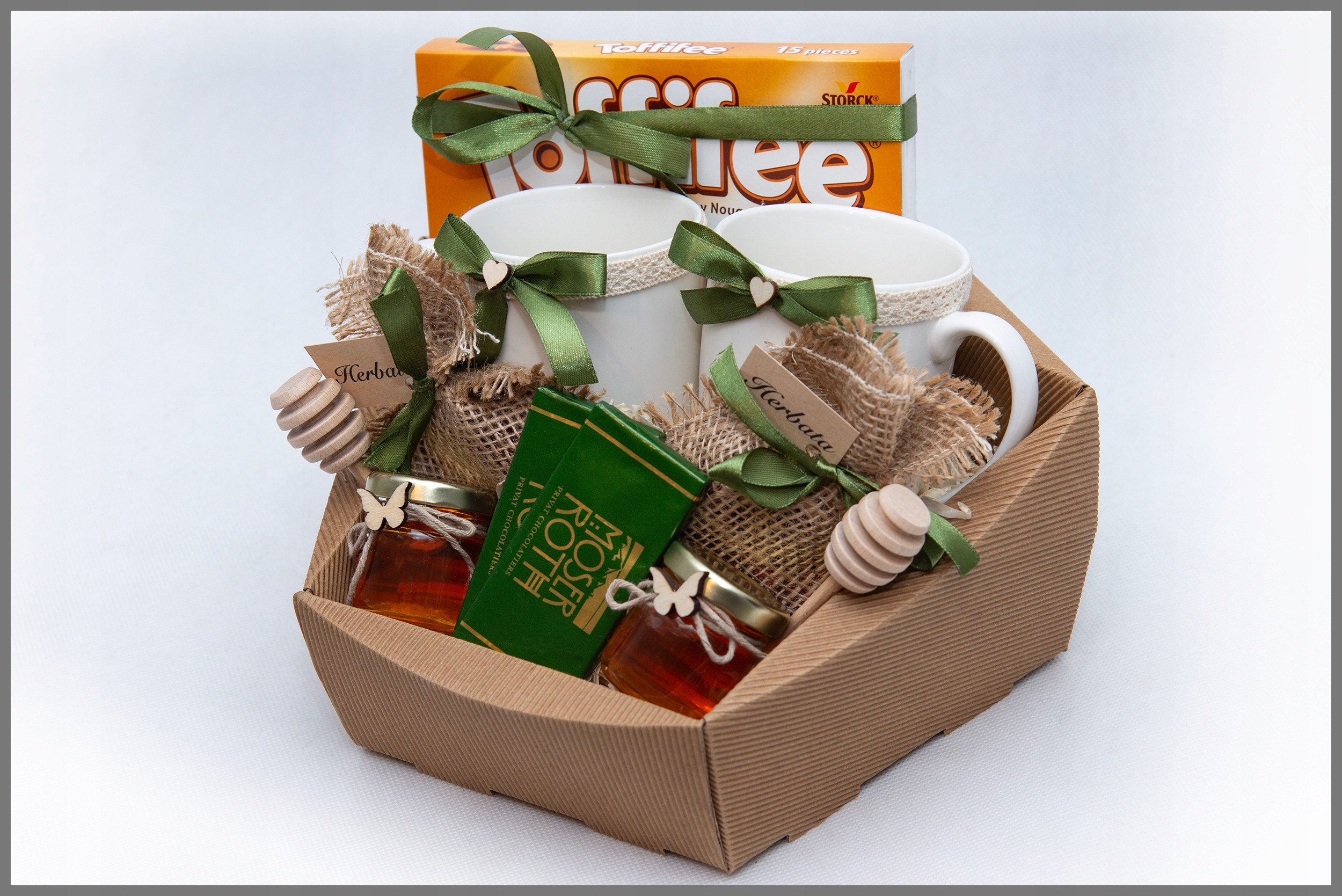 PREZENT DLA DZIADKÓW NA DZIEŃ BABCI I DZIADKA DUŻY KOSZ KUBEK HERBATA MIÓD