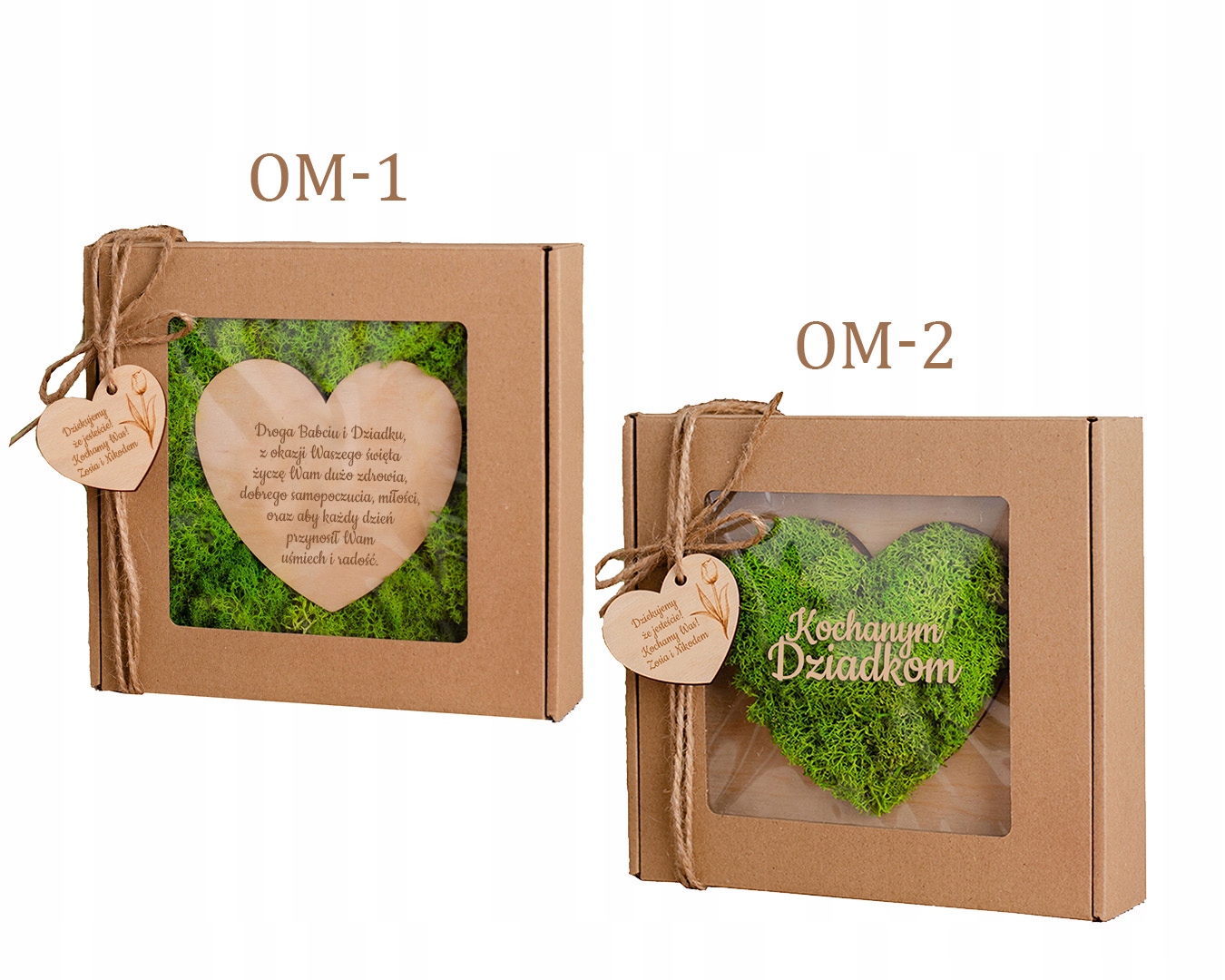 Prezent na dzień Babci i Dziadka Serce wykończony chrobotkiem w pudełku