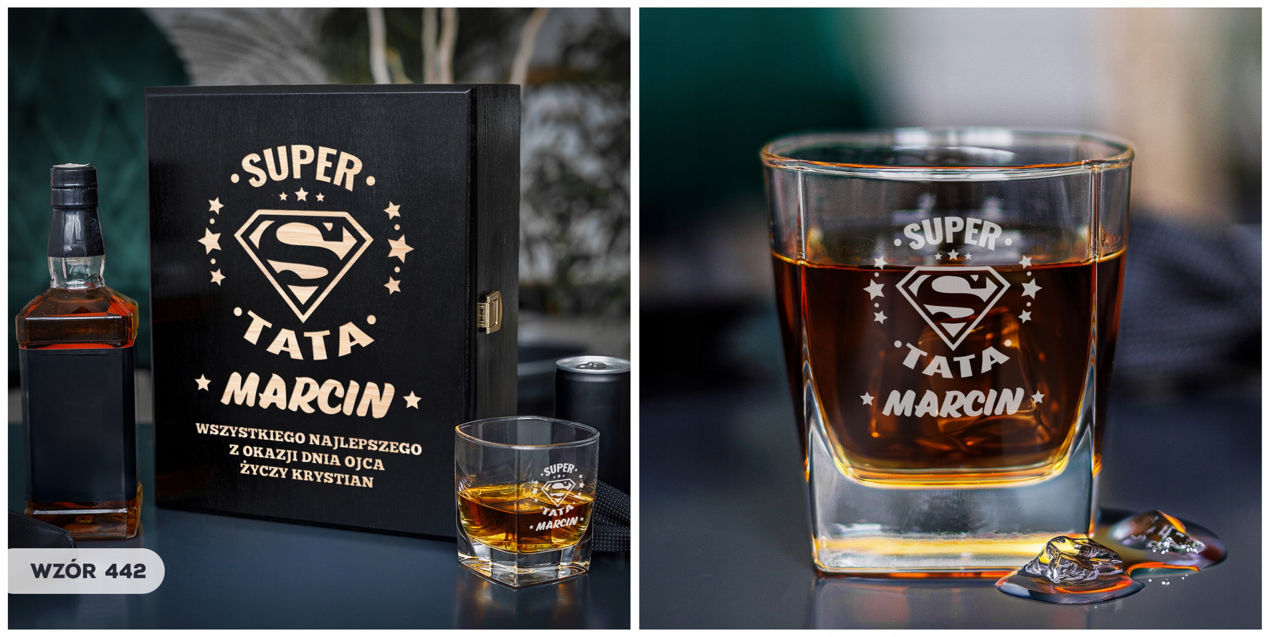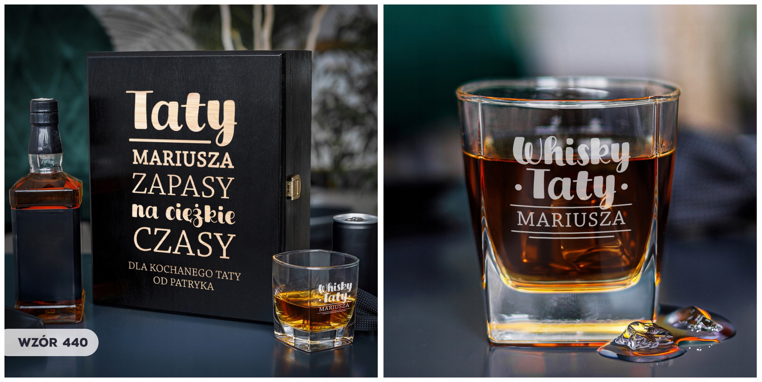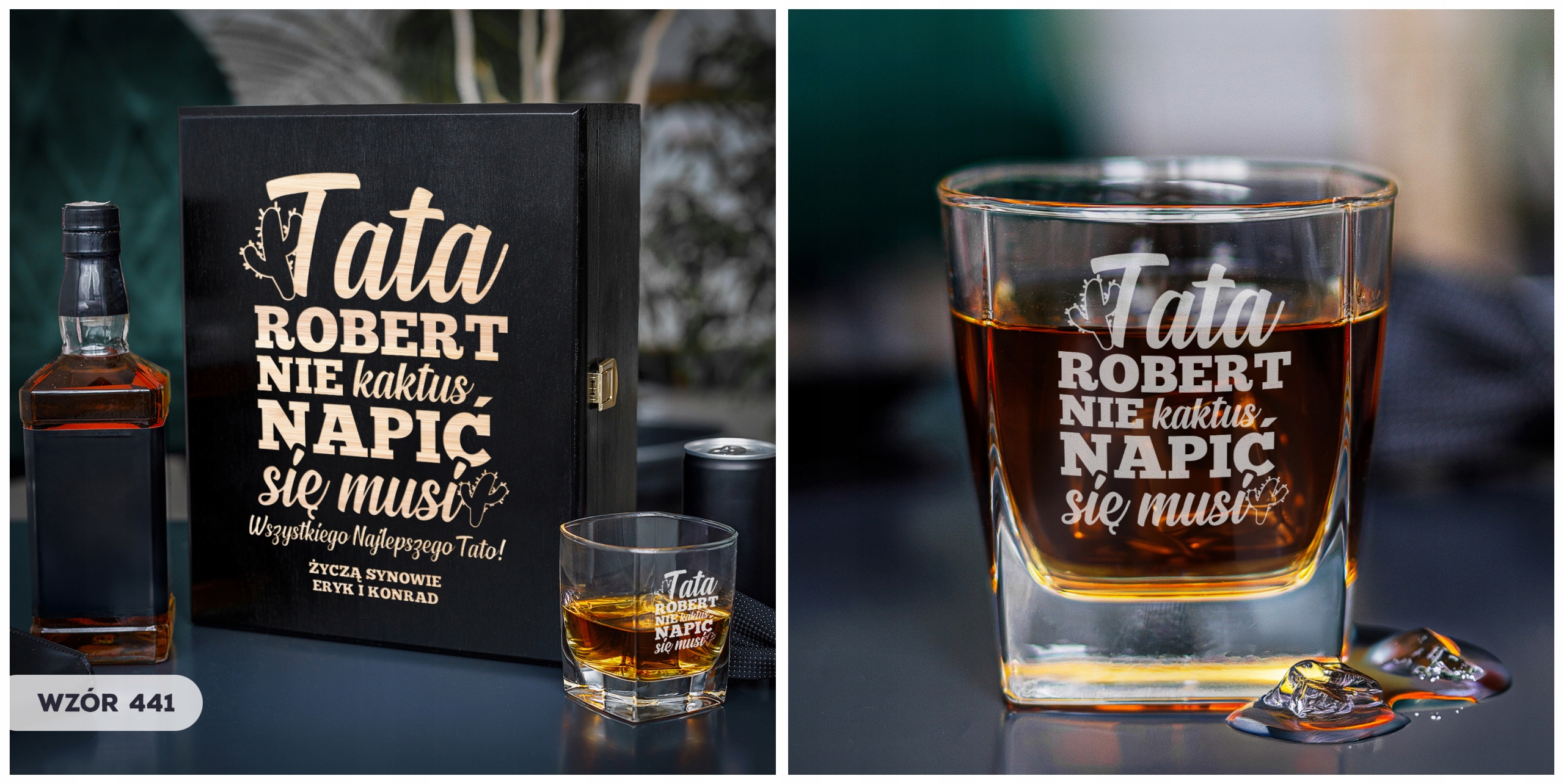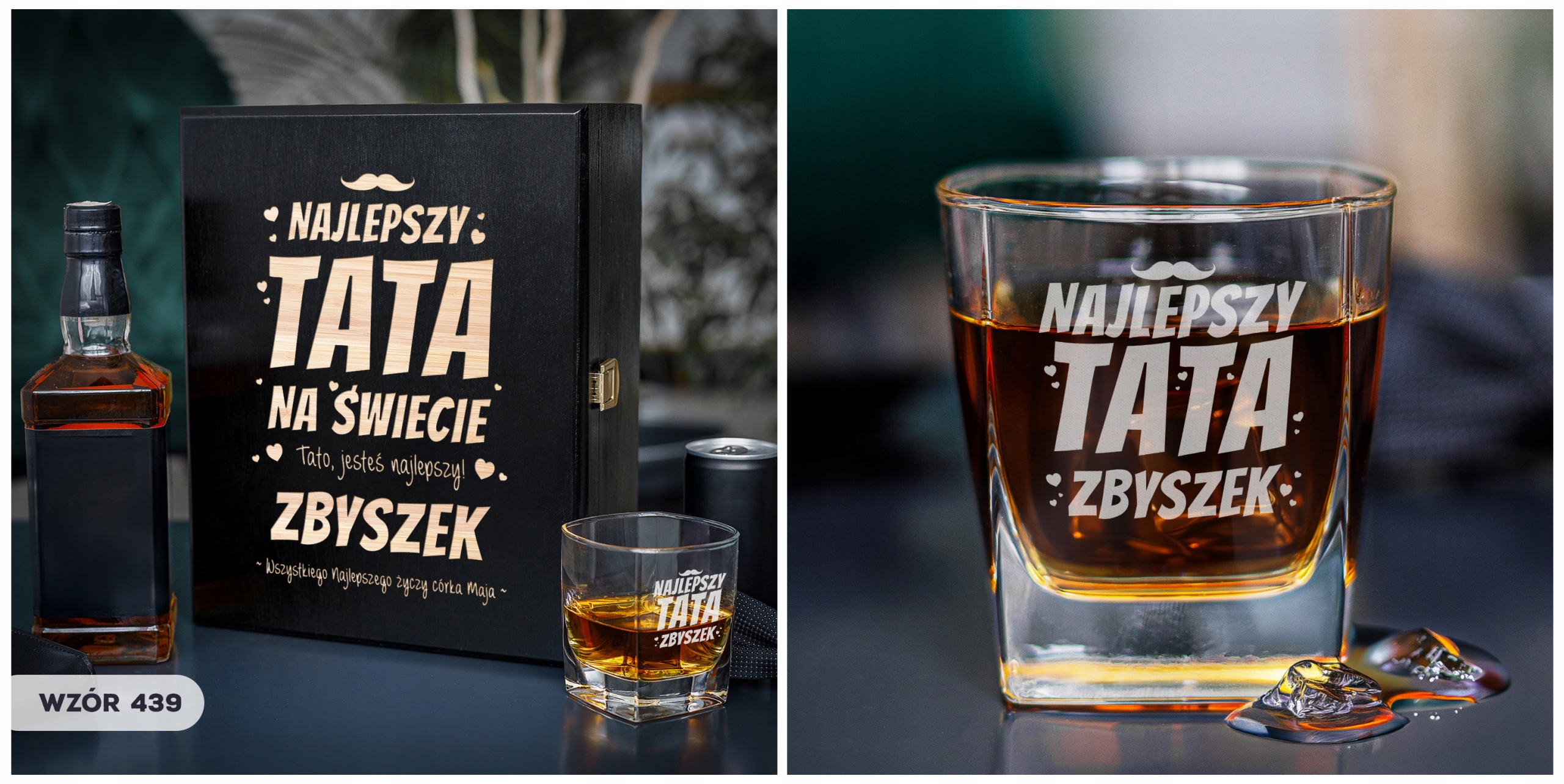 PREZENT NA DZIEŃ OJCA SZKLANKI DO WHISKY SKRZYNKA ALKOHOL PREZENT DLA TATY