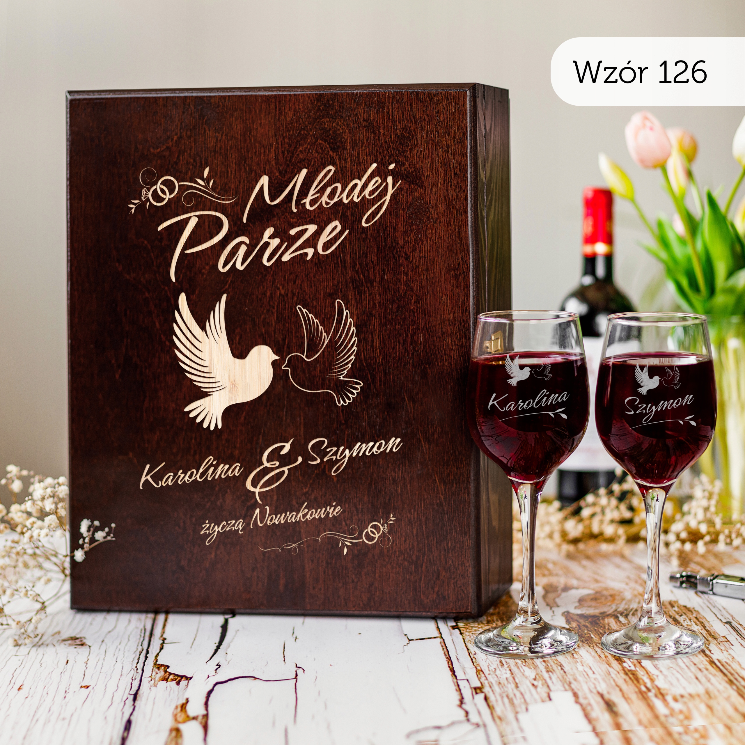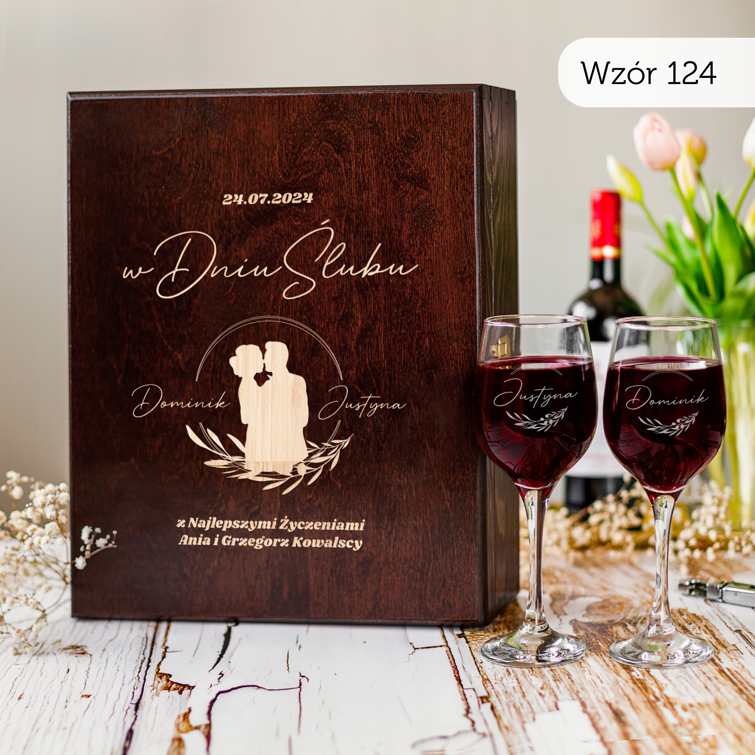 PREZENT NA ŚLUB SKRZYNKA NA WINO PREZENT ŚLUB DLA PARY MŁODEJ Z GRAWEREM