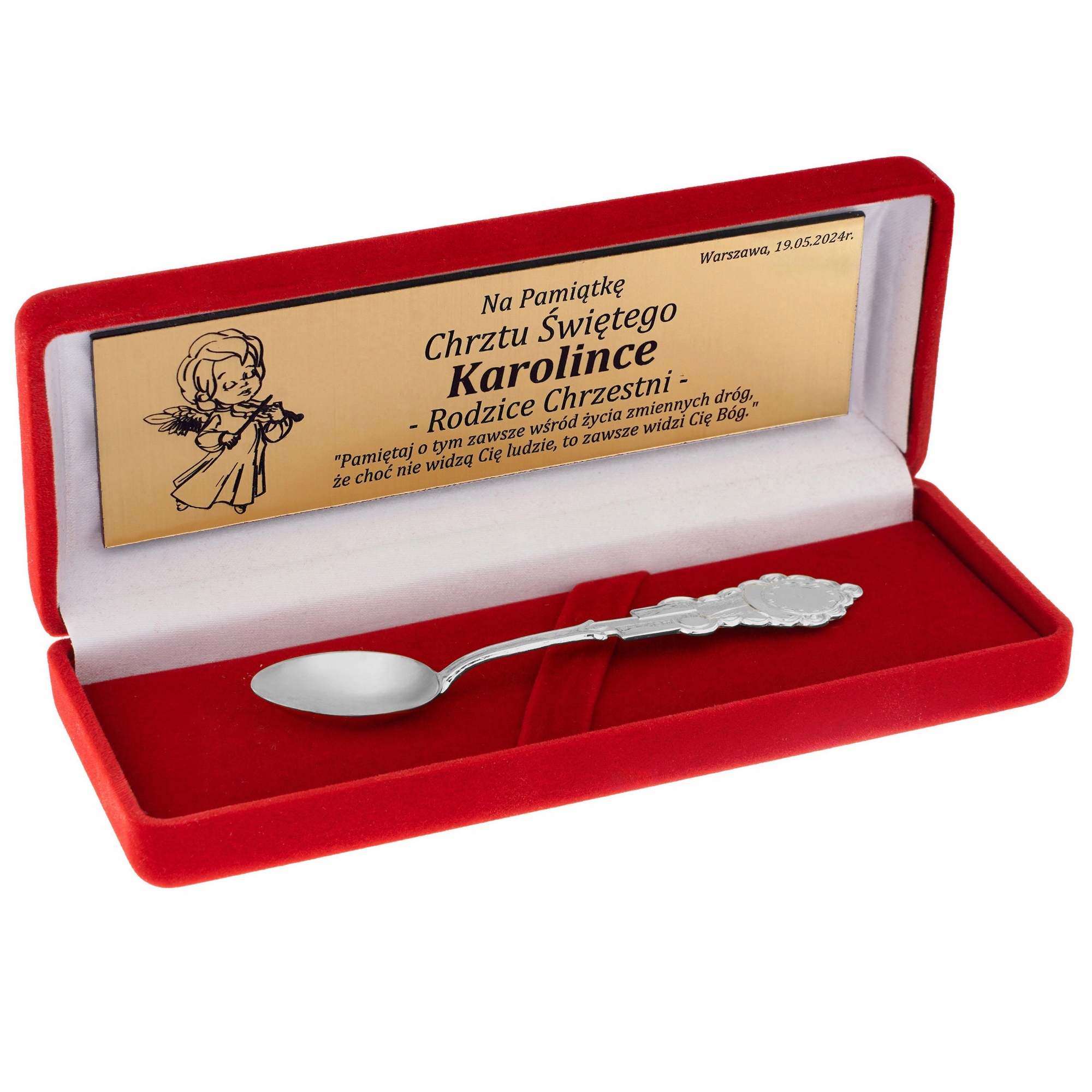 Елегантний s Срібна ложка з гравіюванням - ідеальний подарунок на хрещення або день народження. Упаковано в елегантну коробку, із сертифікатом автентичності. Ідеальний сувенір на все життя.