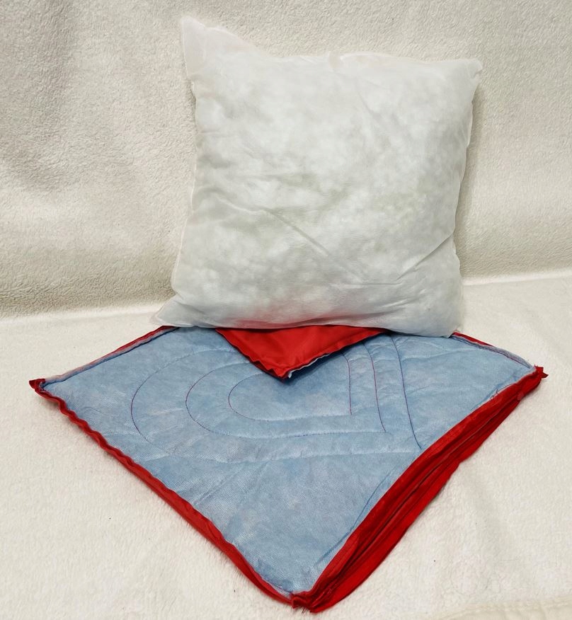 Набір складений таким чином, що його можна передати відразу після отримання. Подушка та ковдра будуть прикрашені однією з трьох смачних стрічок.