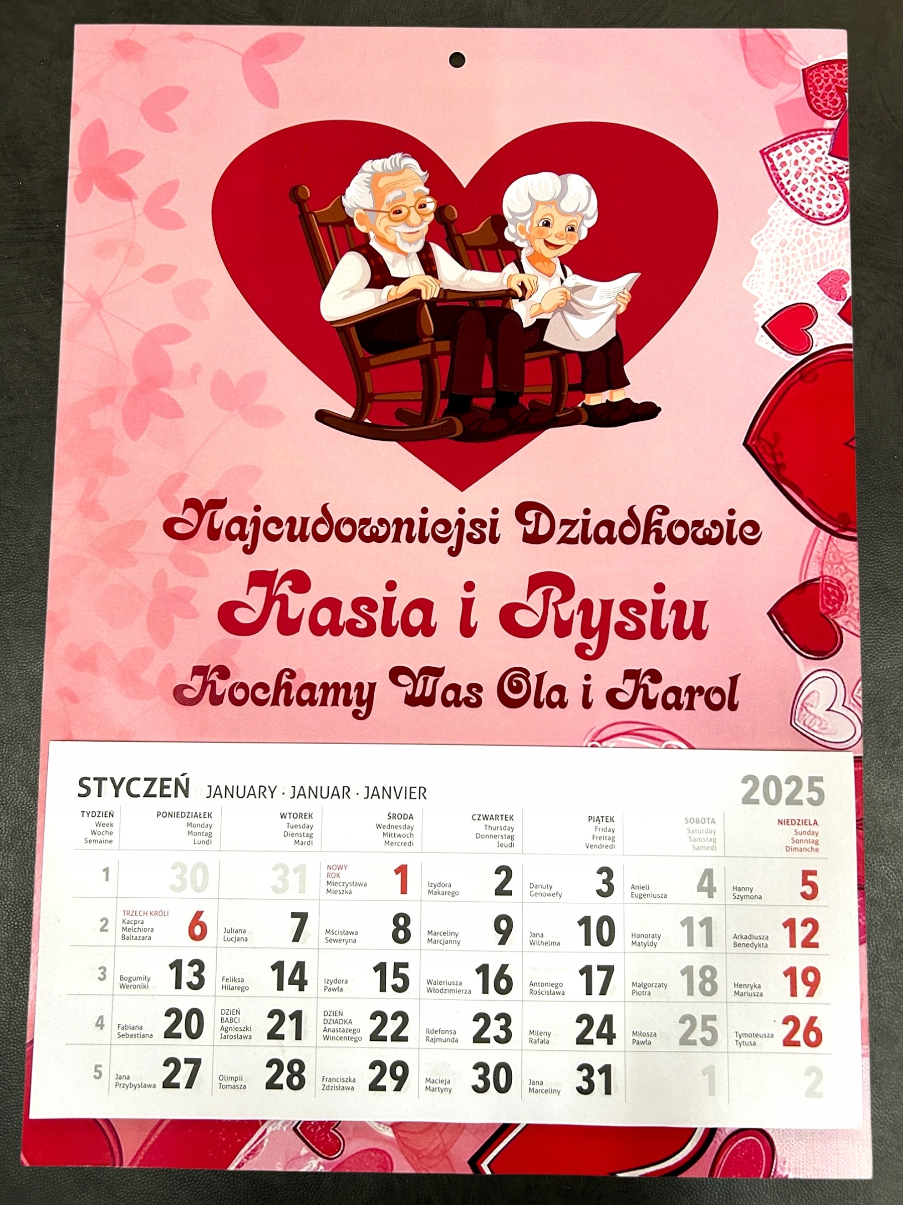 Prezent na święta Dzień Babci Dziadka Foto kalendarz A3 Foto zdjęcie PR956