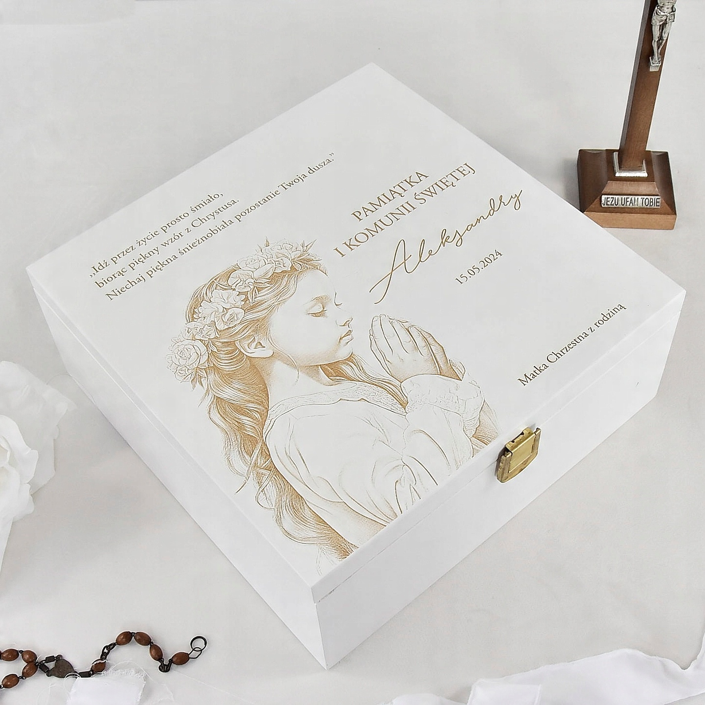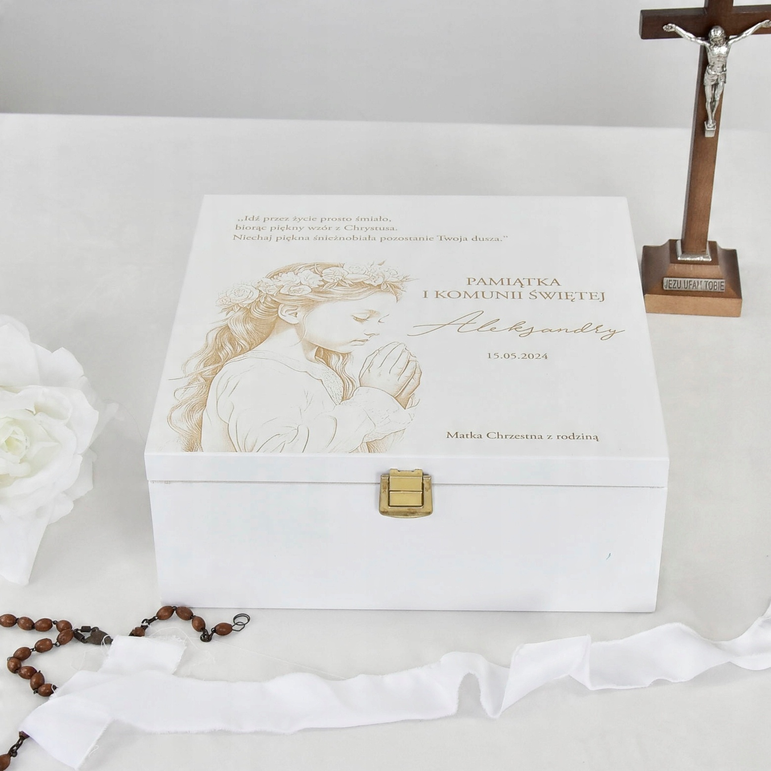 Prezent PAMIĄTKĄ PIERWSZEJ KOMUNII ŚWIĘTEJ dla dziewczynki grawer komunia
