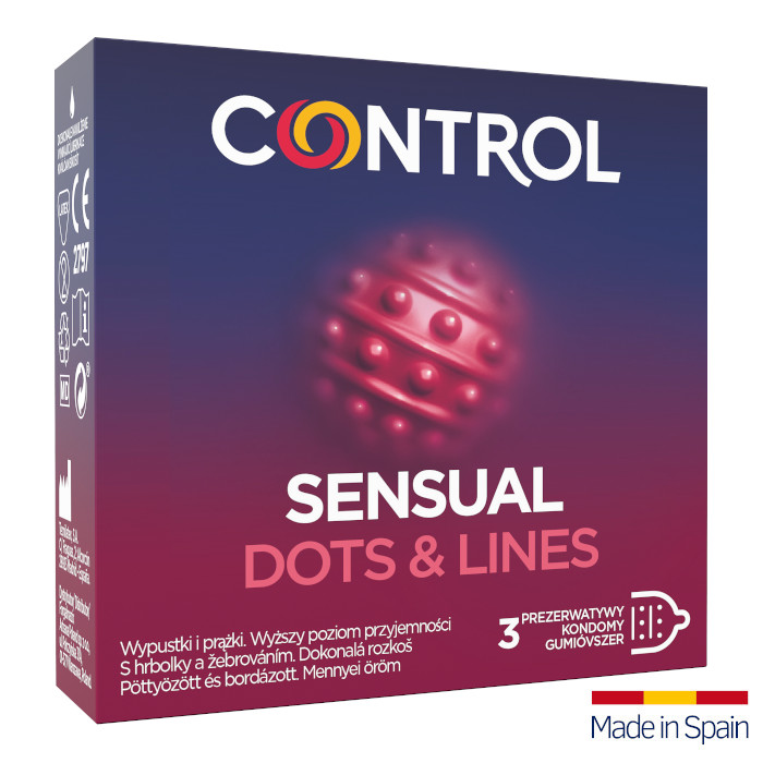 Натуральні латексні презервативи з крапками та виступами для додаткових приємних відчуттів. Спеціальна текстура презервативівControl Sensual Dots & Linesз виступами та виступами, розподіленими по всій поверхні, забезпечує додаткову стимуляцію для посилення задоволення. Виготовлені з натурального латексу, вони прозорі та гарантують ідеальну посадку та максимальний комфорт завдяки анатомічній формі Adapta. Підходить для використання з гелями та лубрикантами на водній та силіконовій основі. Вони ідеально підходять для спільного відкриття нового, насиченого досвіду.