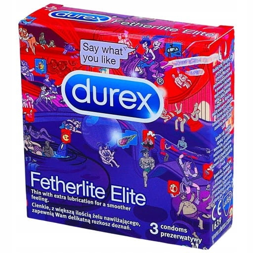 з додатковим лубрикантом для підвищеної сексуальної чутливості. Виготовлена з натурального прозорого латексу, легкої форми, з резервуаром. Завдяки використанню інноваційної технології презервативи Durex Fetherlite Elite мають більш приємний запах.