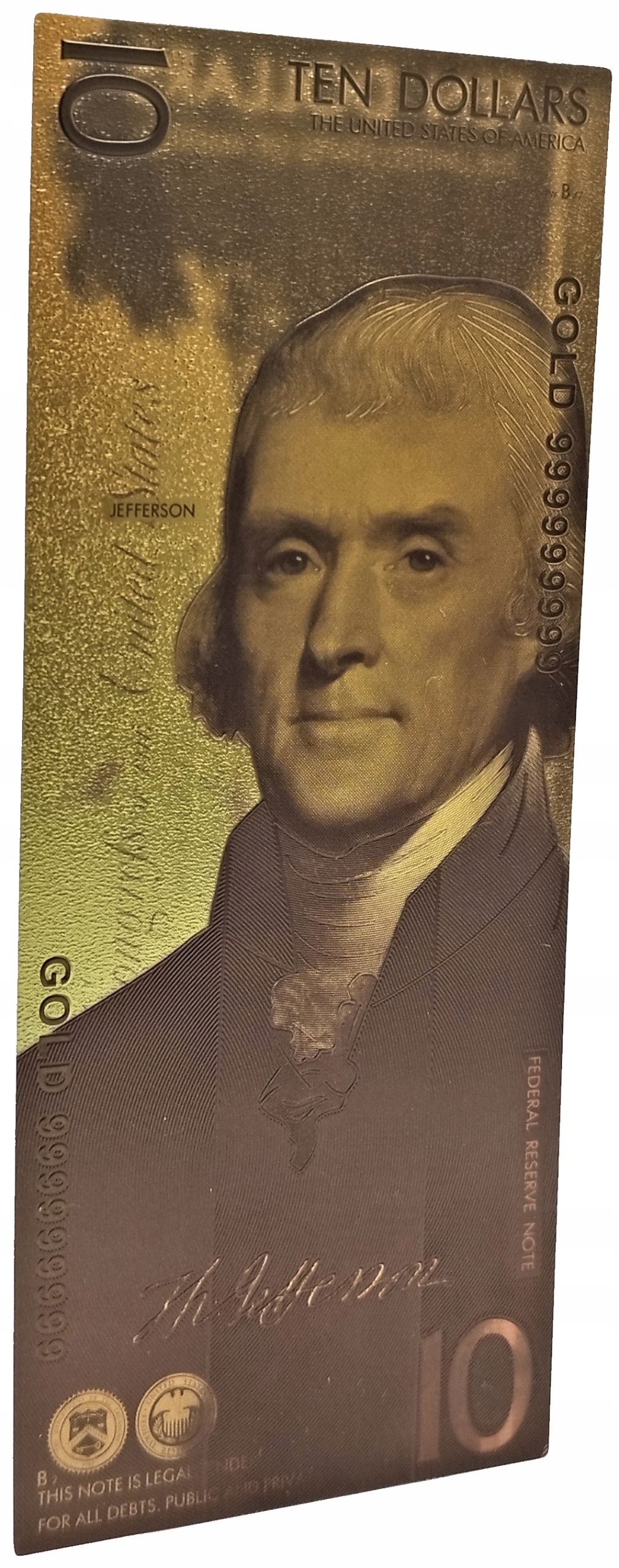 Красива колекційна банкнота 10 доларів із зображенням 3-го Президента Сполучених Штатів Томаса Джефферсона.