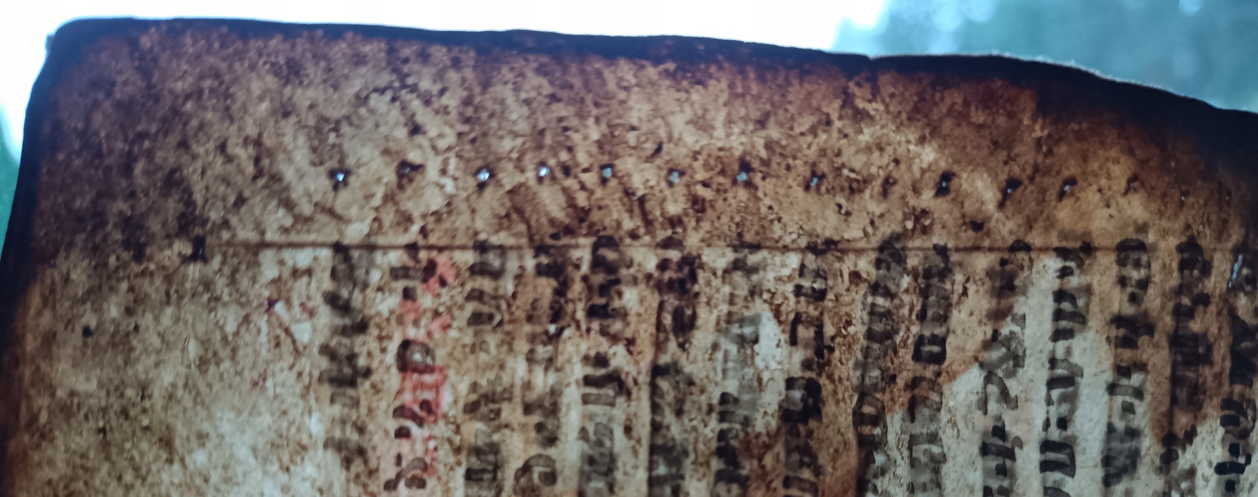 На першій сторінці ми бачимо лише маленький червоний запис - можливо, одне слово?
