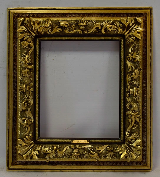 Стара декоративна дерев'яна рамка в оригінальному стані, вкрита золотими пластинками срібного металу. Рама має унікальний вигляд і підходить для різних стилів малювання, а також для обрамлення дзеркала. Візуальний стан рами хороший, це видно на фотографіях нижче.