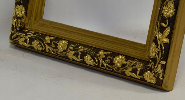 Стара декоративна дерев'яна рама в оригінальному стані, покрита шлагметалом із сусального золота. Рама має унікальний вигляд і підходить для різних стилів малювання, а також для обрамлення дзеркала. Візуальний стан рами хороший, це видно на фотографіях нижче.