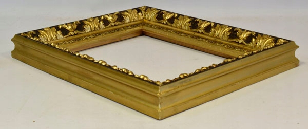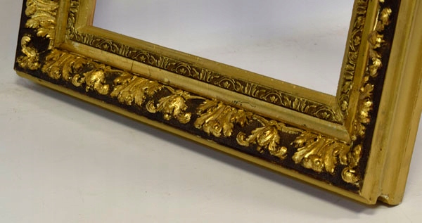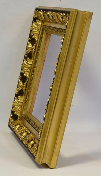 Стара декоративна дерев'яна рамка, в оригіналі стоїть, покритий золотими пластівцями шлагметалу. Візуальний стан рами хороший, видно на фотографіях нижче.