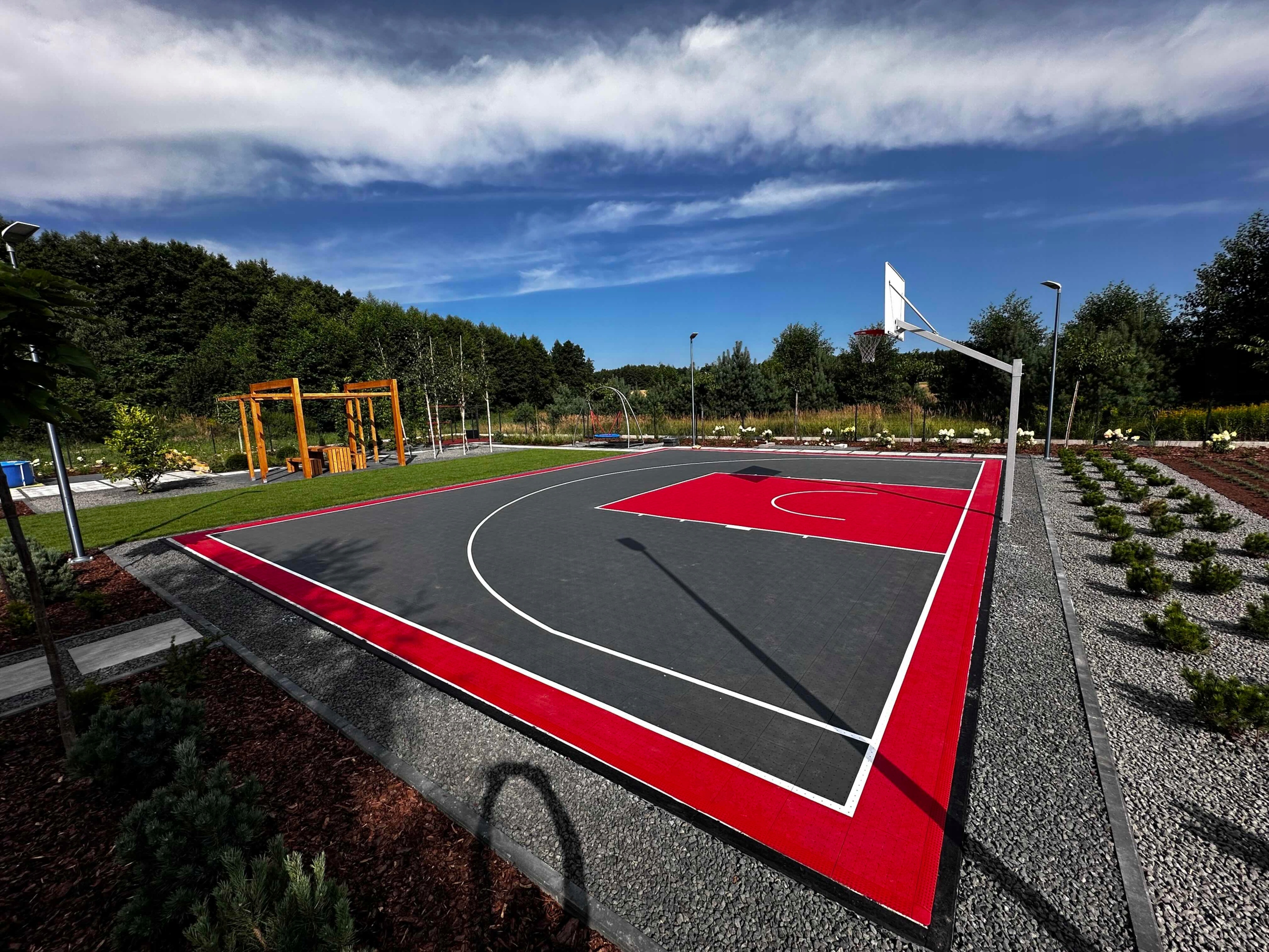 Еластомерна плитка серії SES від Enlio - професійне модульне спортивне покриття нового покоління. Вони призначені для баскетбольних майданчиків, багатофункціональних майданчиків і тенісних кортів. Завдяки легкому та швидкому монтажу їх використовують як мобільні майданчики на вуличних заходах або показових матчах. З їх допомогою ви також можете створити домашній майданчик для відпочинку у своєму саду. Вони виготовлені з еластомеру (гуми), що гарантує високі спортивні параметри та неймовірний комфорт гри.