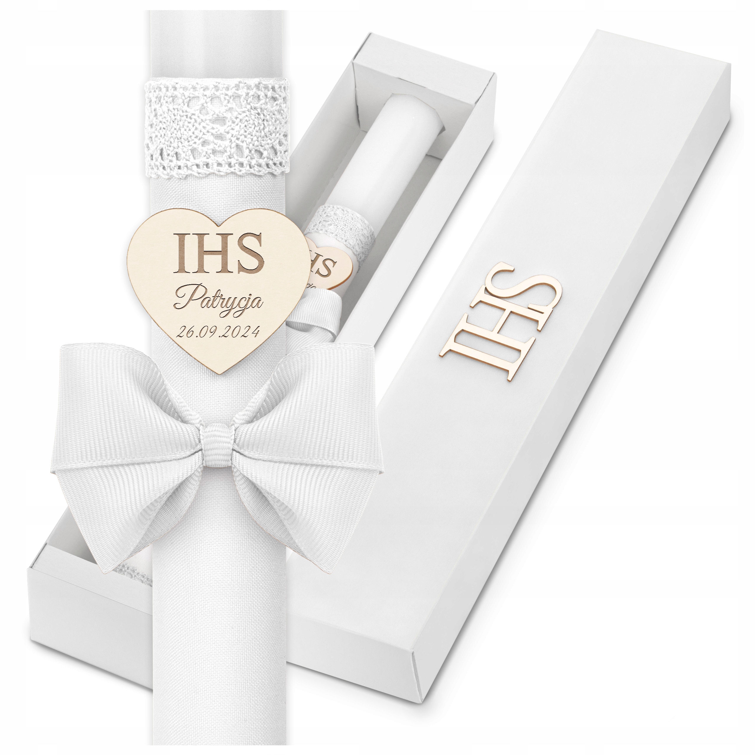 Найбільш особистий елемент - це центрально закріплене серце на свічці, яке було вигравіровано з назвою та датою першого Святого Причастя . Ця унікальна, ручна обробка надає свічку унікальний персонаж і робить його не лише практичним об'єктом, але й сувенірним роками.