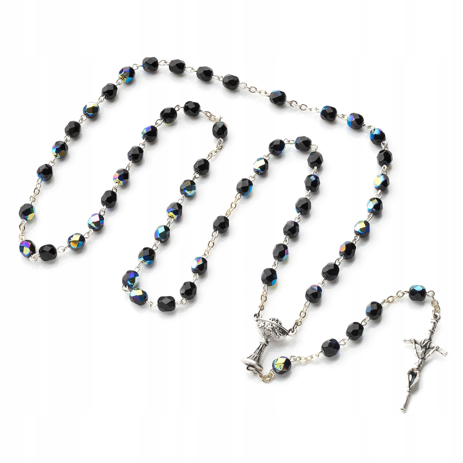 Вервиця для першого причастя для хлопчика. Намиста з гранованого бісеру з хрестиком Святого. Йоана Павла ІІ.