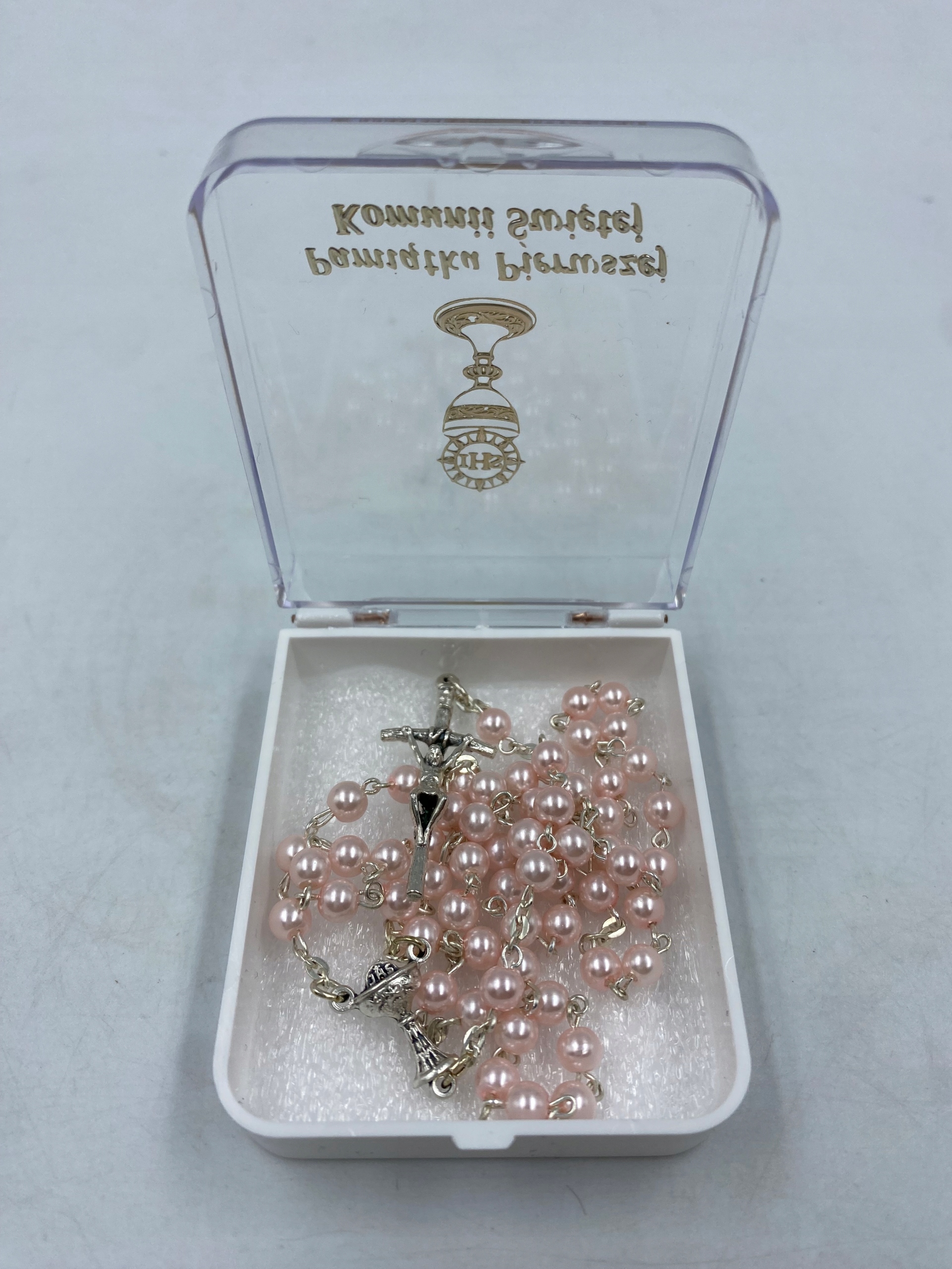 - ВЕРВИЦЯ ДЛЯ ПРИЧАСТЯ Перли Рожева КОРОБКА Сувенір Першого Святого Причастя
