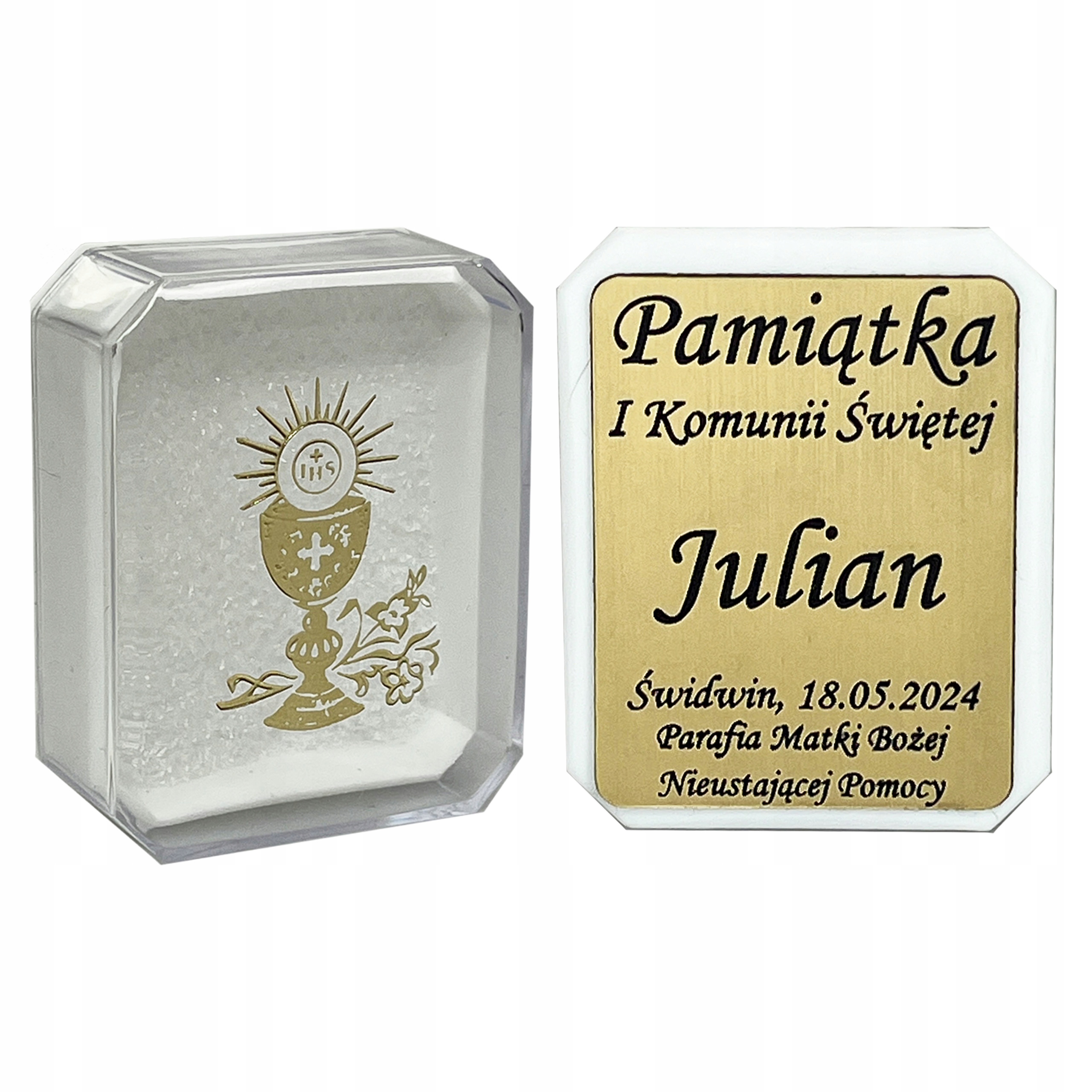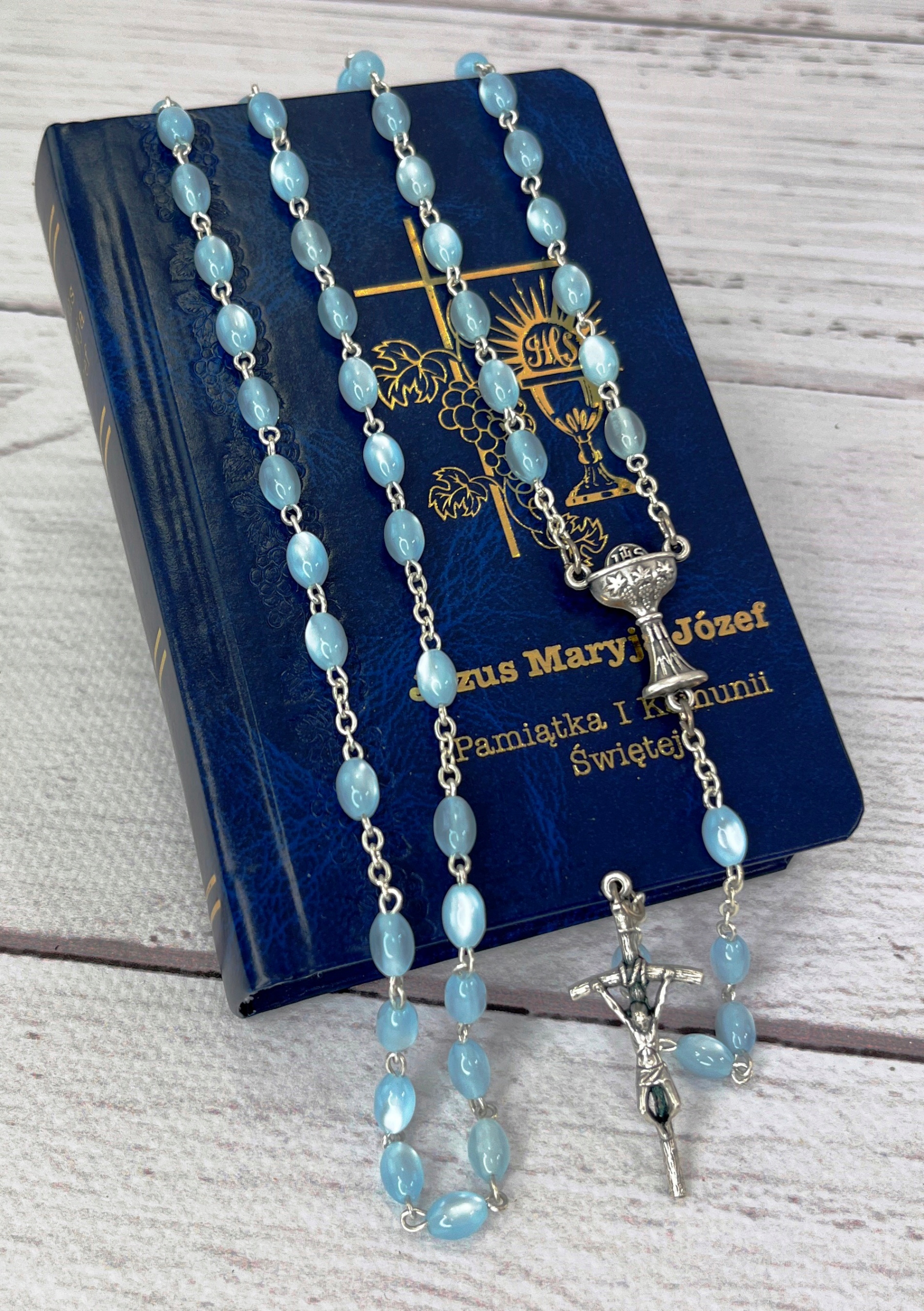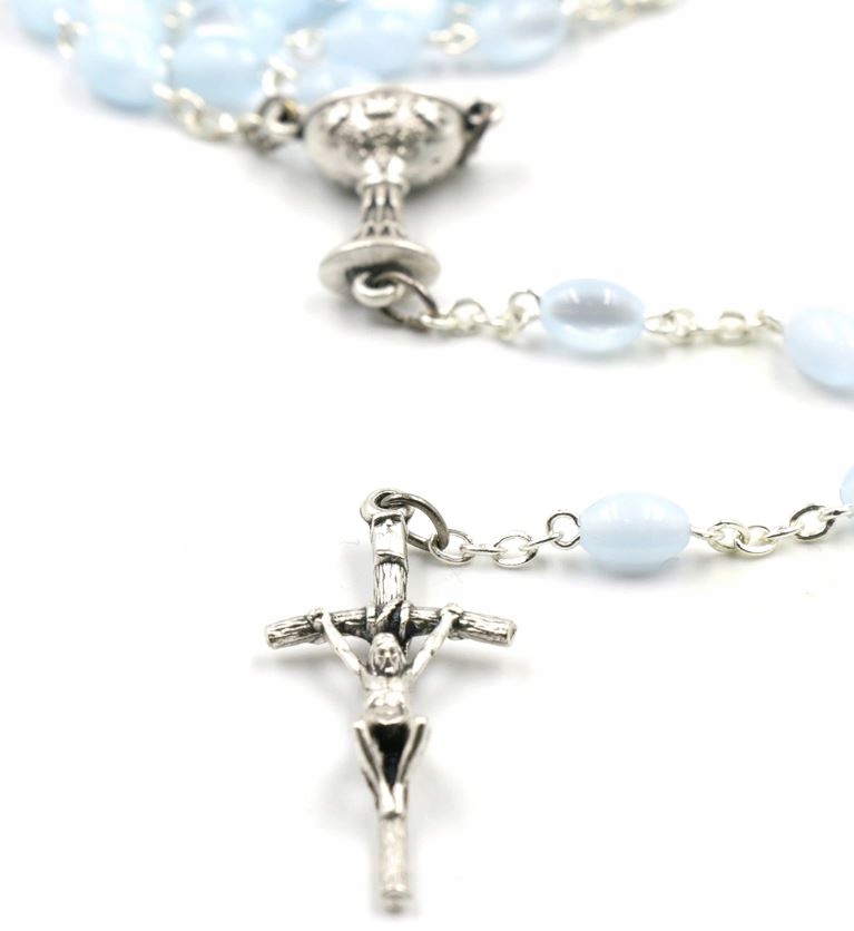 Причастя розарій у коробці з гравюром - сувенір та блакитна перлина причастя