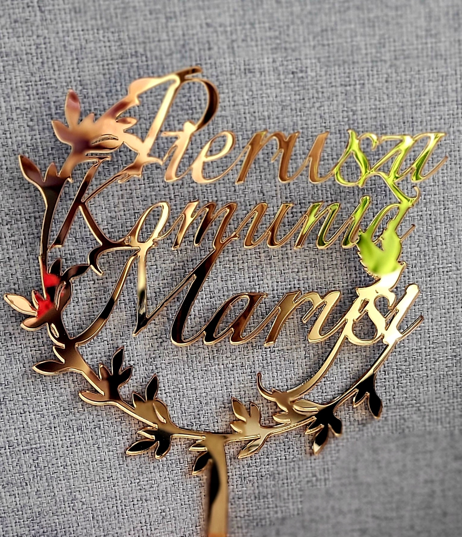 причастя топпер причастя золото дзеркало ім'я дзеркала персоналізоване