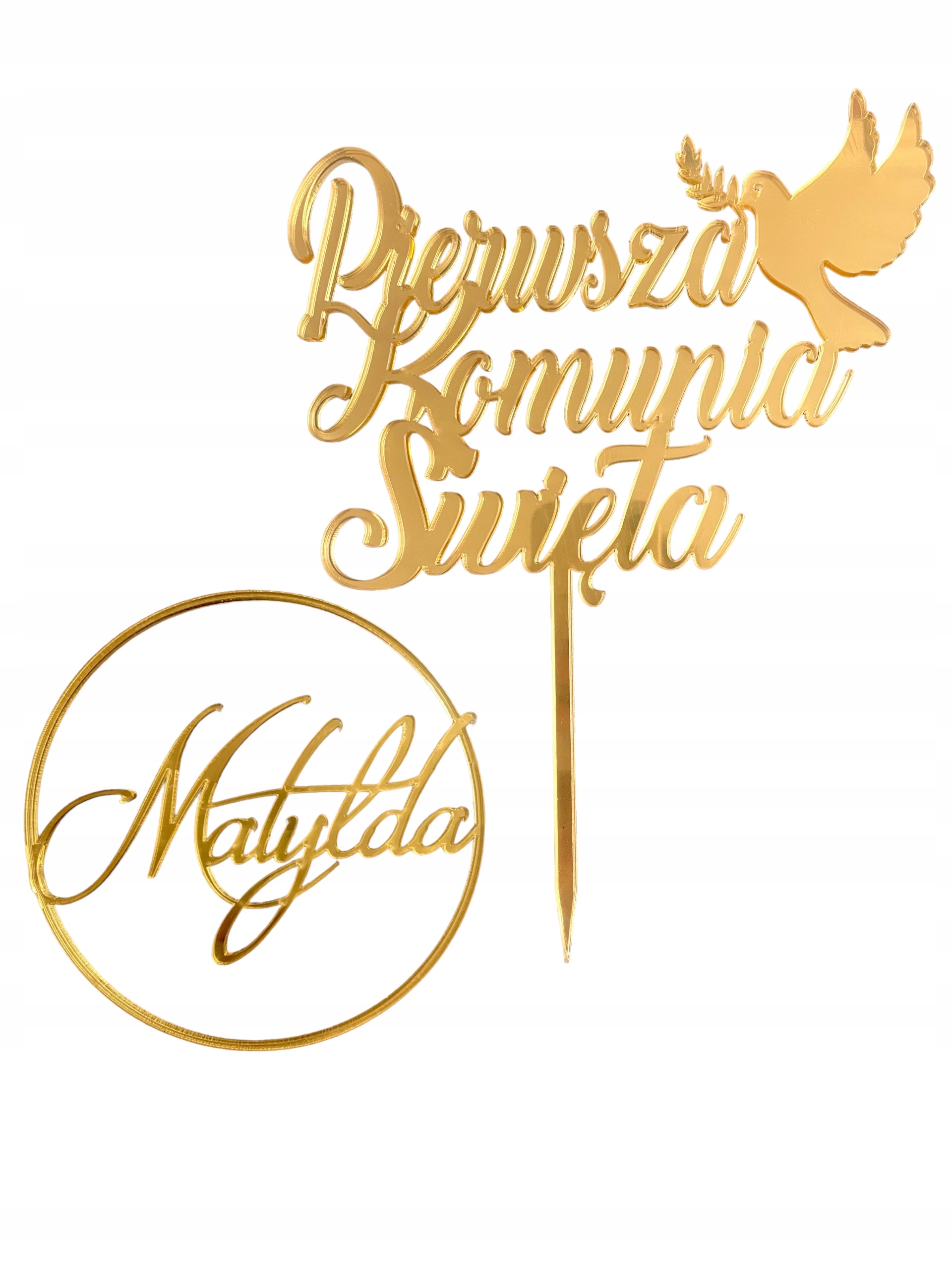< Set: Topper with the inscription First Communion Saint + Name (any) in Koło to the side of the cakeУ повідомленні під час розміщення замовлення, будь ласка, надайте назву, яке потрібно розмістити на топпер (у зміненій формі), наприклад Наталія