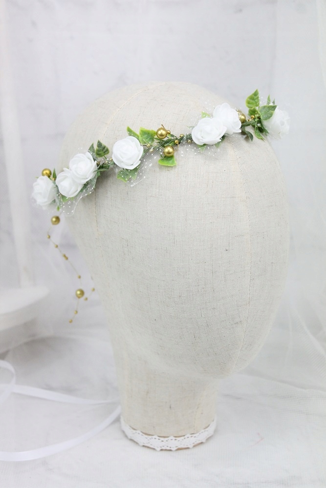 Крім того, можна придбати шифоновий лук з трояндою на гребінці або гірлянді з квітами, також на гребінці, ви можете прикріпити її до задньої частини вінка, щоб бути більш вражаючим.