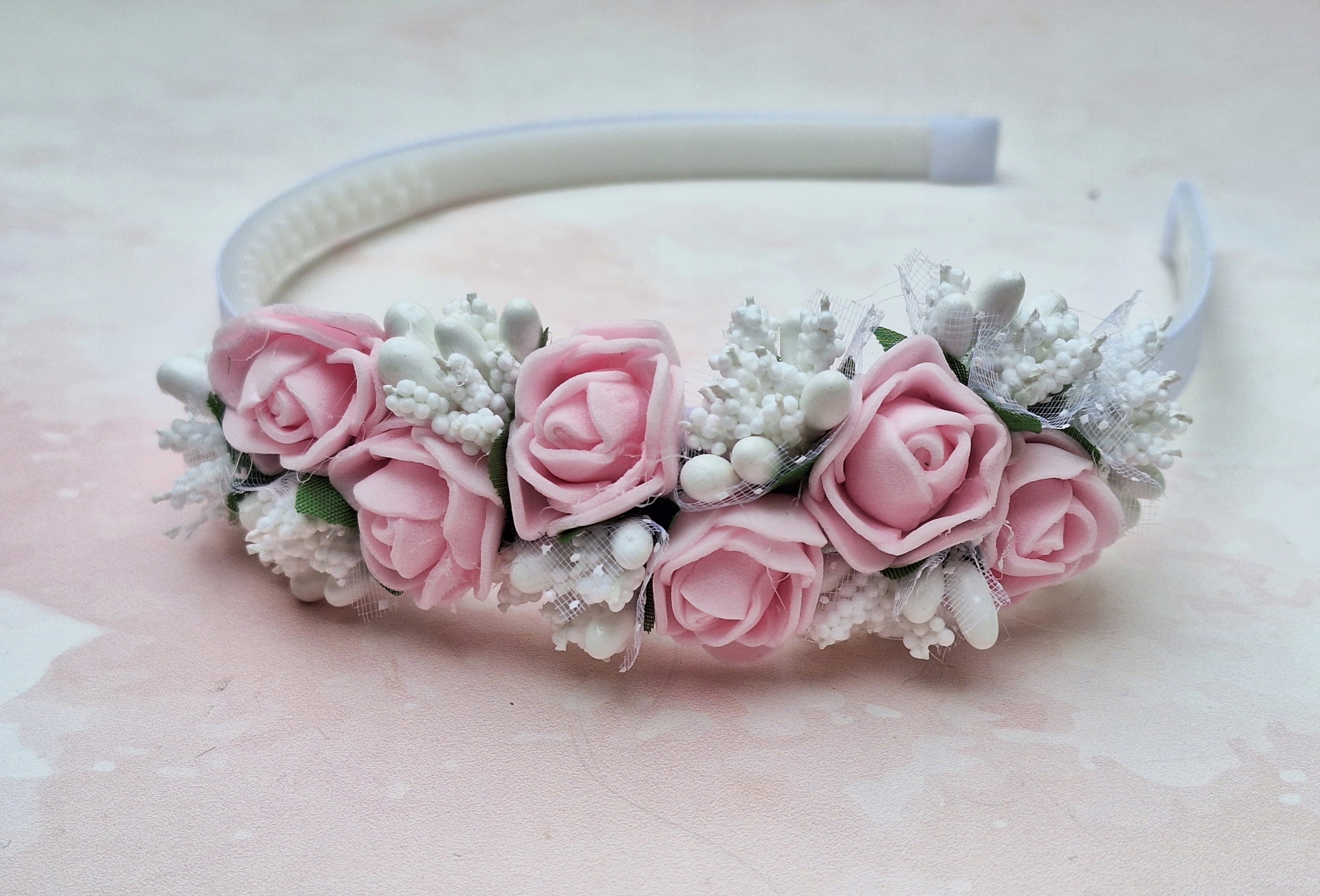 Причастяна пов'язка з трояндами рожева для сукні весільна маленька троянда