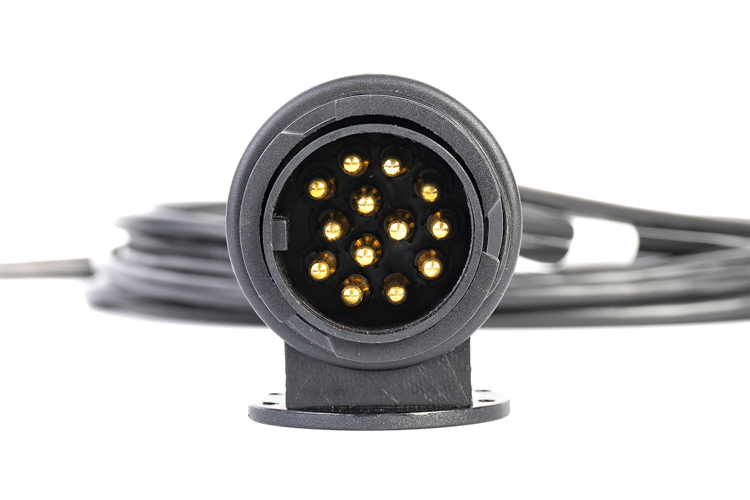 - 13-контактний електричний кабель причепа має довжину 5 метрів із поперечним перерізом жили 0,5 мм і підходить для електроустановки в причепах автомобільних.
