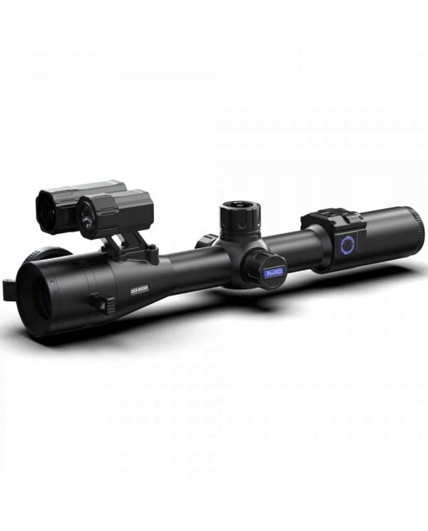 Залишається на крок попереду конкурентів, оскільки першим використовує новий круглий дисплей 800 x 800 LTPS. Це забезпечує вищу роздільну здатність зображення в поєднанні з високочутливим датчиком зображення 0,001 CMOS із низькою інтенсивністю світла. Користувачі можуть вибрати роздільну здатність 2560 x 1440 (2K) або 1920 x 1080. Дуже цінним доповненням також є лазерний далекомір з дальністю дії 1000м, завдяки якому ми уникнемо помилок при оцінці відстані до цілі.