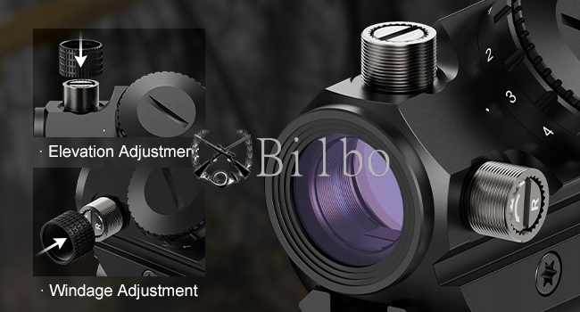 RDS-22 Red Dot містить циферблати висоти та вітру зі звуковими клацаннями. Кожне маленьке клацання пересуває точку удару на одну хвилину. 1 MOA точно відповідатиме одному дюйму на 50 ярдів.