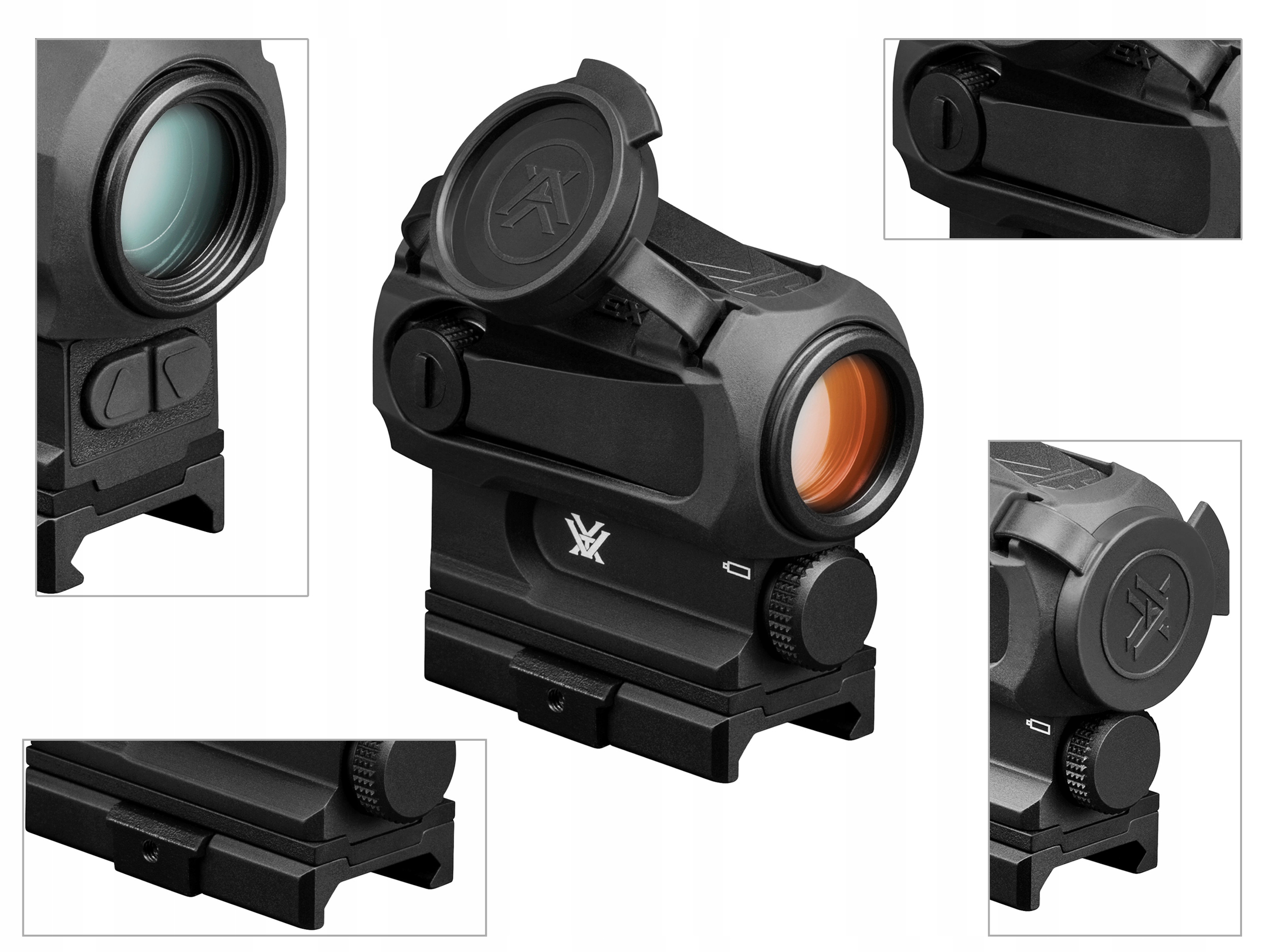 - Елементи набору коліматора: підйом, кріплення Picantinny, серветка для чищення оптики, скляні кришки, шестигранний ключ, акумулятор , гарантія виробника, гарантія дистриб’ютора, посібник дистриб’ютора, посібник виробника, коліматор
