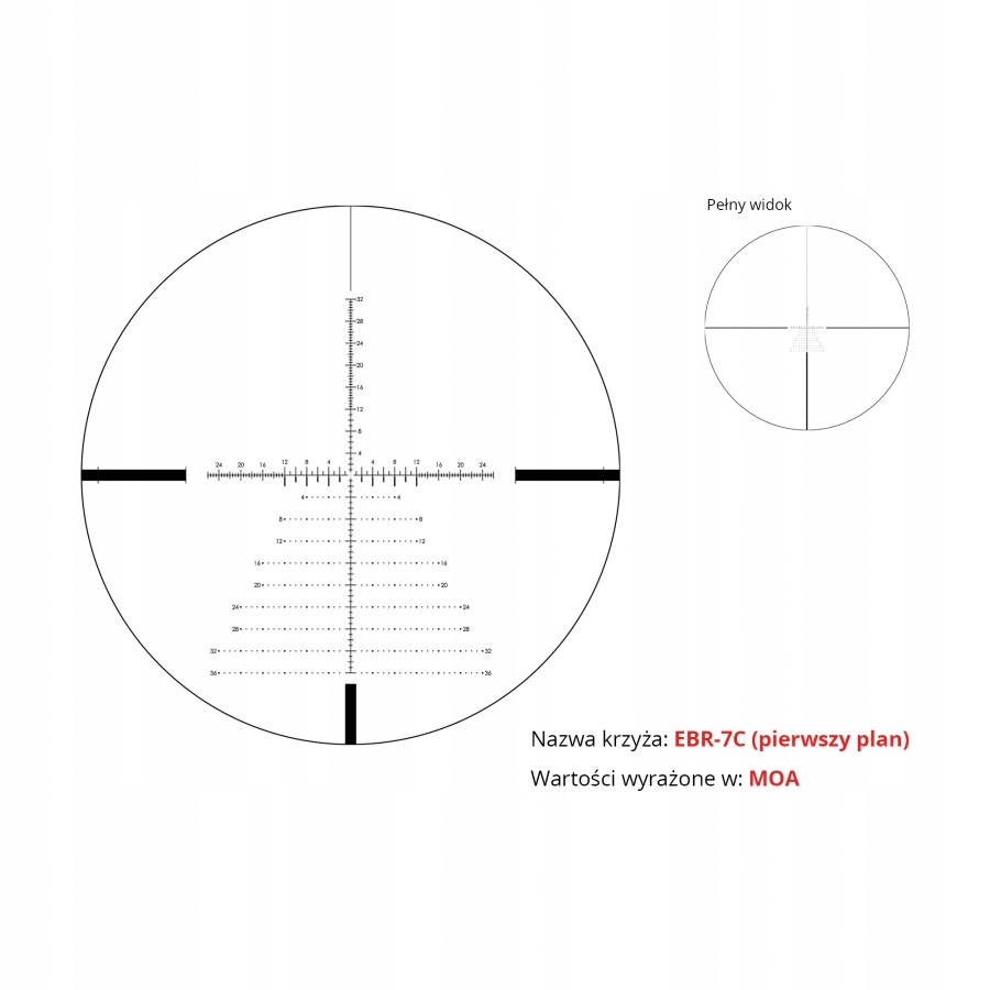 Хрест EBR-7Cє універсальна прицільна сітка в першому плані, ідеальна для стрільців на великі відстані, солдатів і правоохоронців. Для забезпечення максимальної стійкості та надійності оптичної системи прицільна сітка була витравлена лазером і захищена двома шарами скла. Прицільна сітка EBR-7c була розроблена спеціально для стрільби на великі дистанції. Сітка дозволяє точно визначити дистанцію, компенсувати опади, внести поправки на вітер і розрахувати параметри рухомої цілі. Залежно від наших потреб, під час покупки ми можемо вибрати між прицільною сіткою, вираженою в MOA.