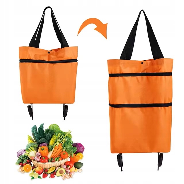 Складений мішок для покупки регульованого розміру з колесами 2in1 помаранчевим візком