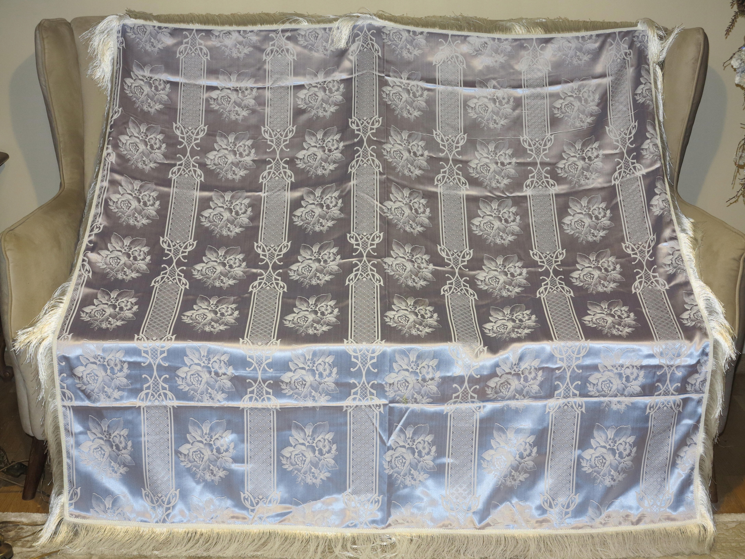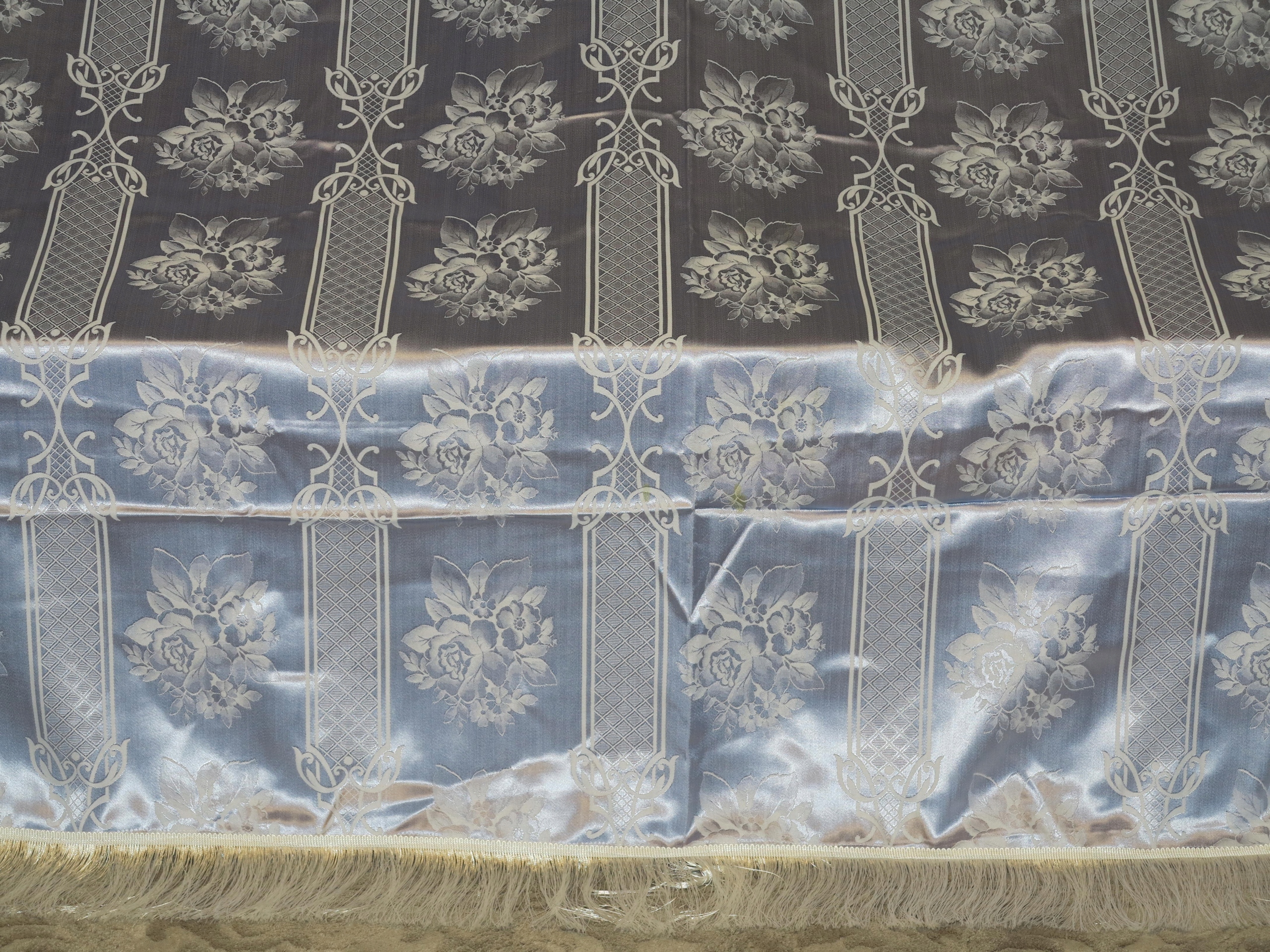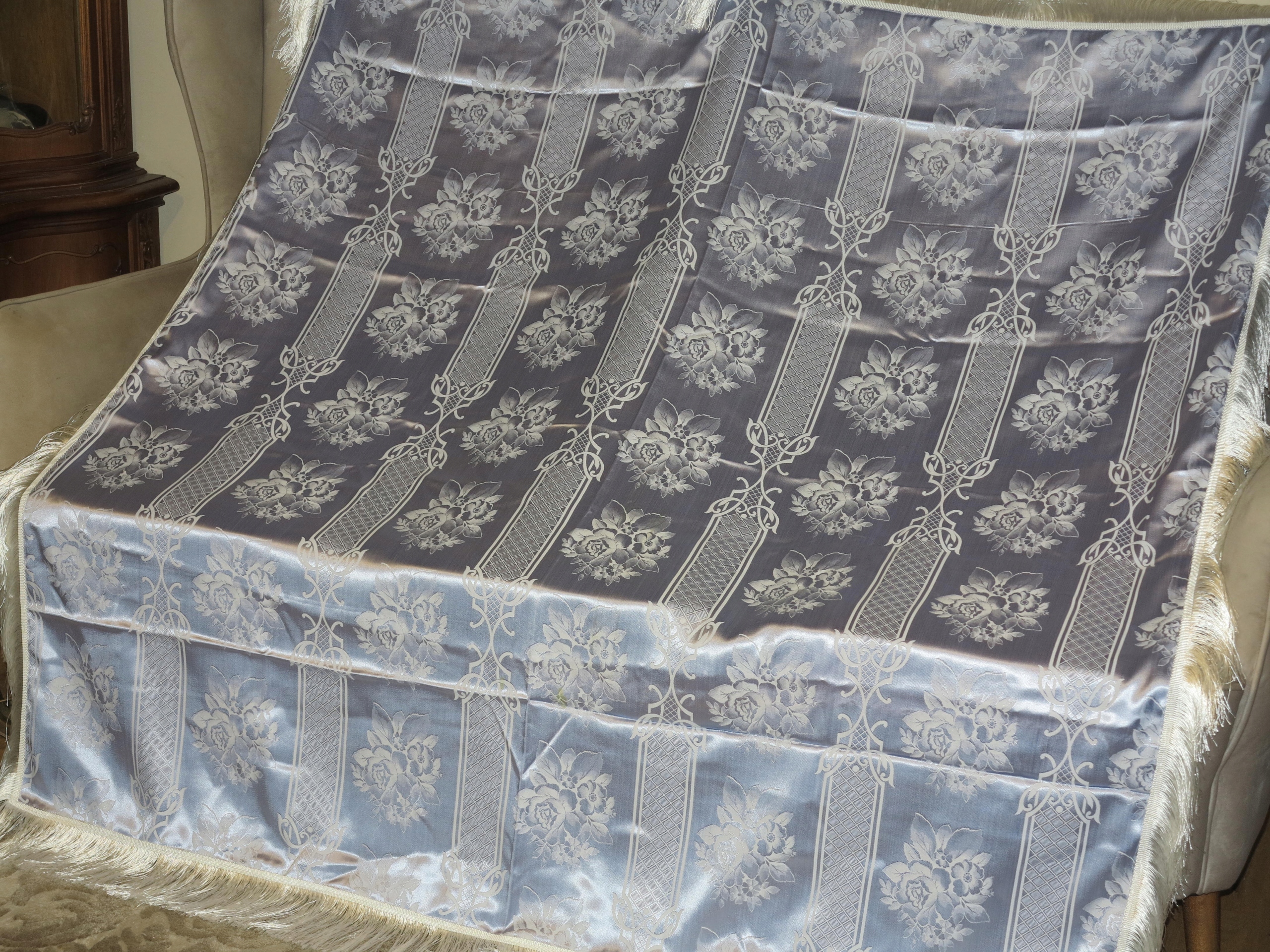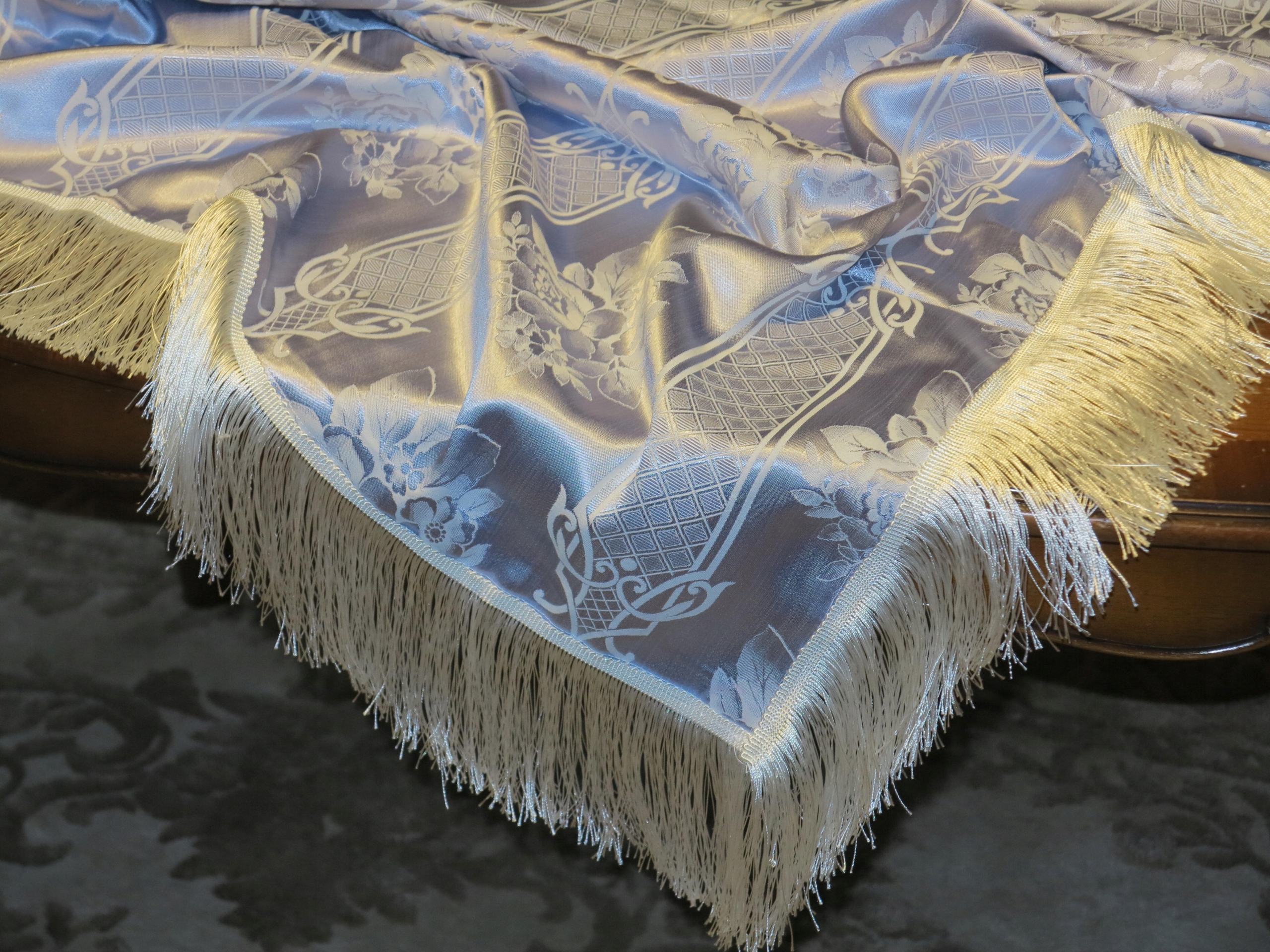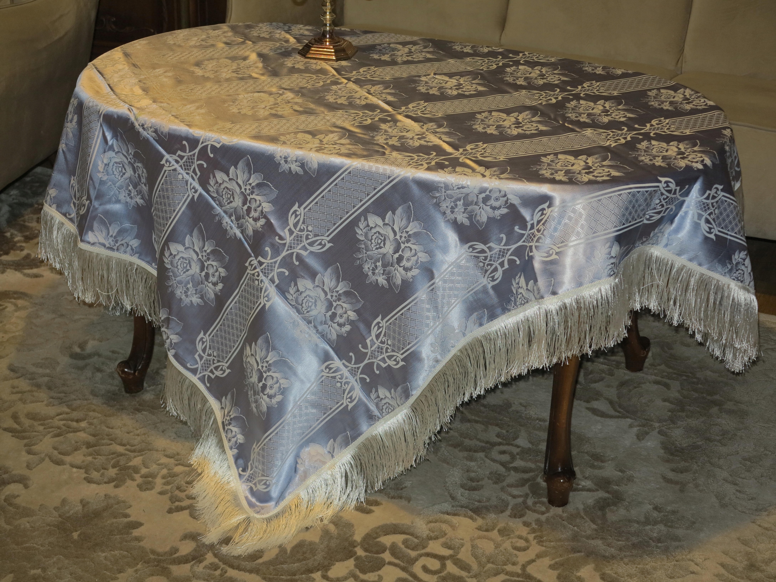 ПРИГОЛУДНА БЛАКИТНА ШОВКОВА СКАТЕРТИНА DADASCHE, ГУСТА БАХРОМА 148/144+10