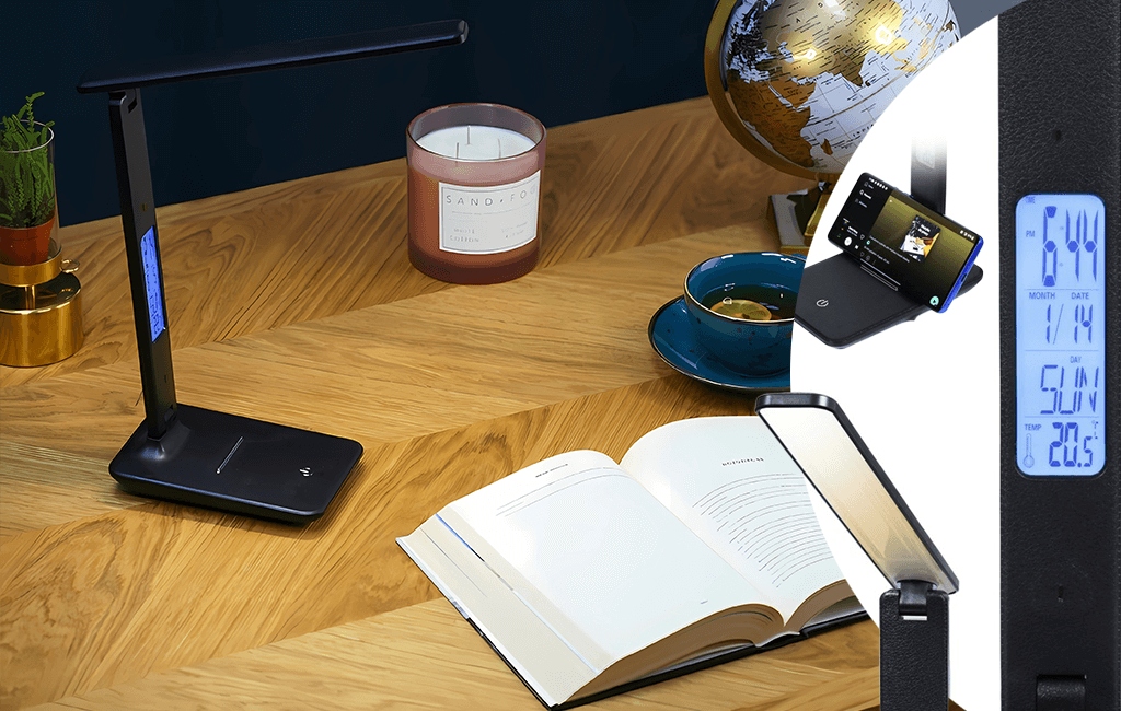 Крім того, лампа оснащена маленьким екраном на якому час, дата, деньітемпература в кімнаті.