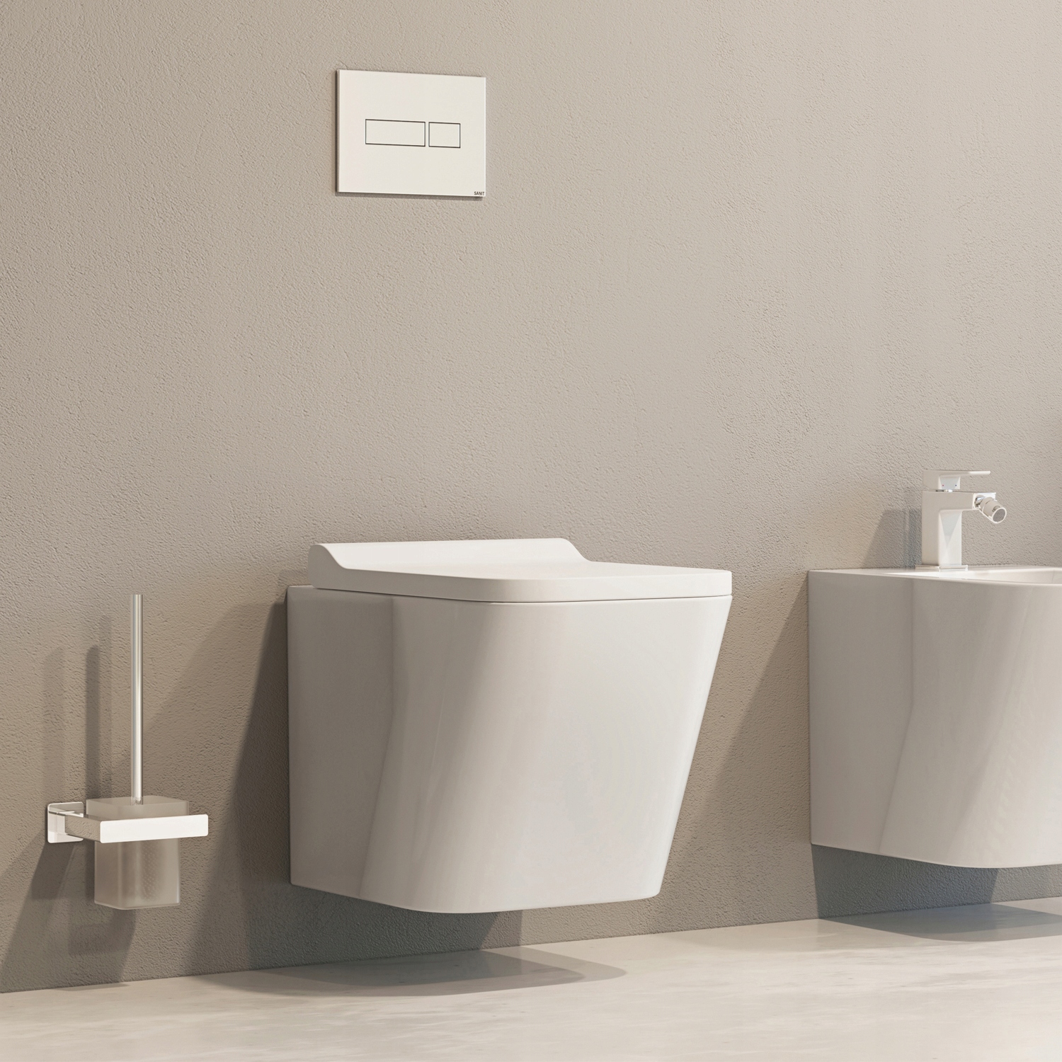Наші унітази оснащено інноваційною системою без оправ, яка забезпечує легку гігієну за рахунок зменшення використання хімікатів. Ця система також зменшує споживання води до 30%, що позитивно впливає як на довкілля, так і на сімейний бюджет.