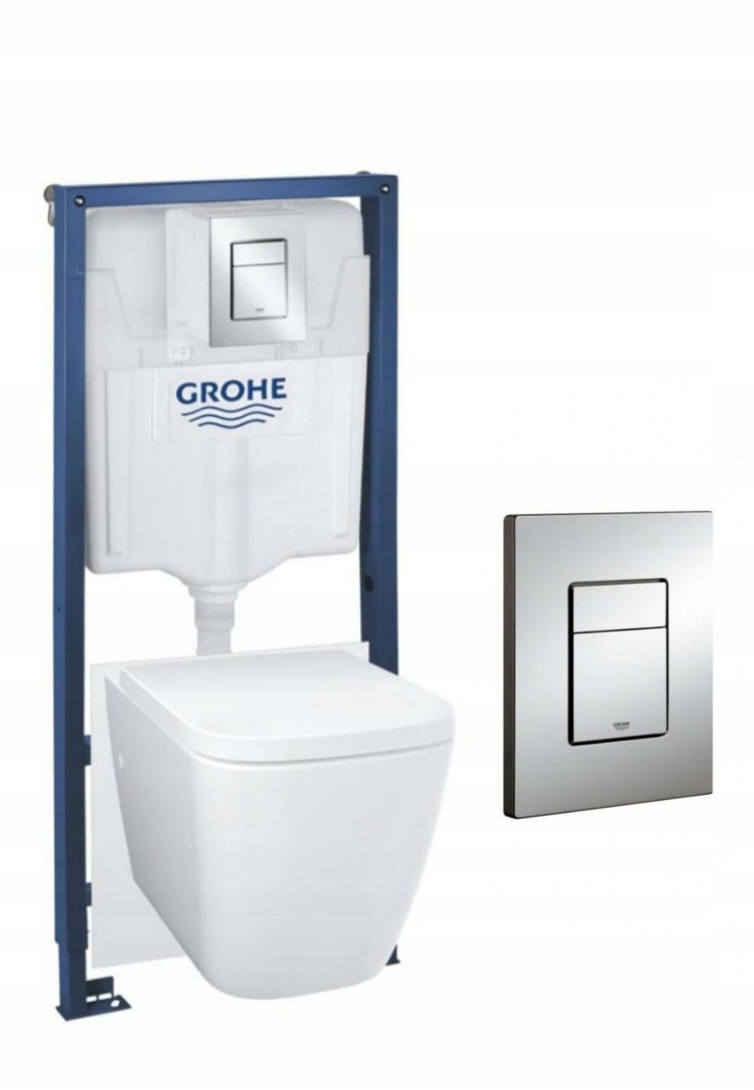 ПОВНИЙ КОМПЛЕКТ УНІТАЗУ GROHE SOLIDO З ХРОМОВОЮ РІВНОЮ КНОПКОЮ ТА ПІДВІСНОЮ ЧАШОЮ GROHE ІЗ СИДІННЯМ З ДЮРОПЛАСТУ, ЩО ПОВІЛЬНО ЗАКРИВАЄТЬСЯ